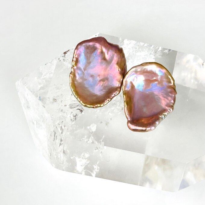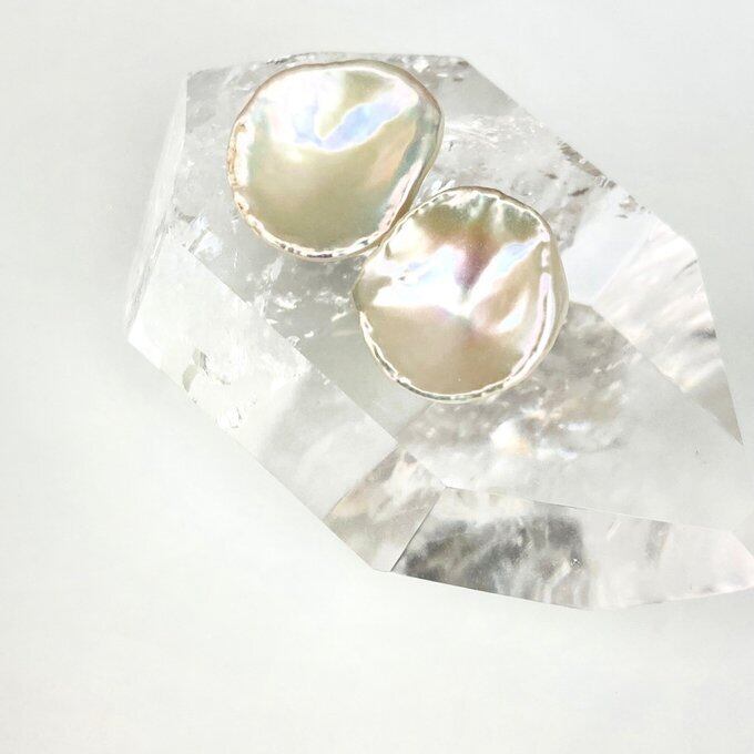 ピアスポストはパール上部につけており、耳からこぼれるようにセッティングしております。
