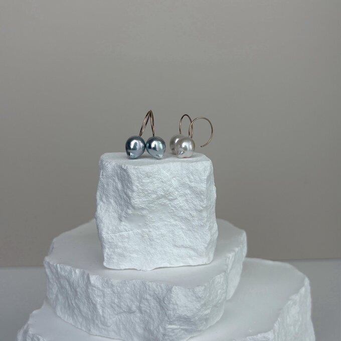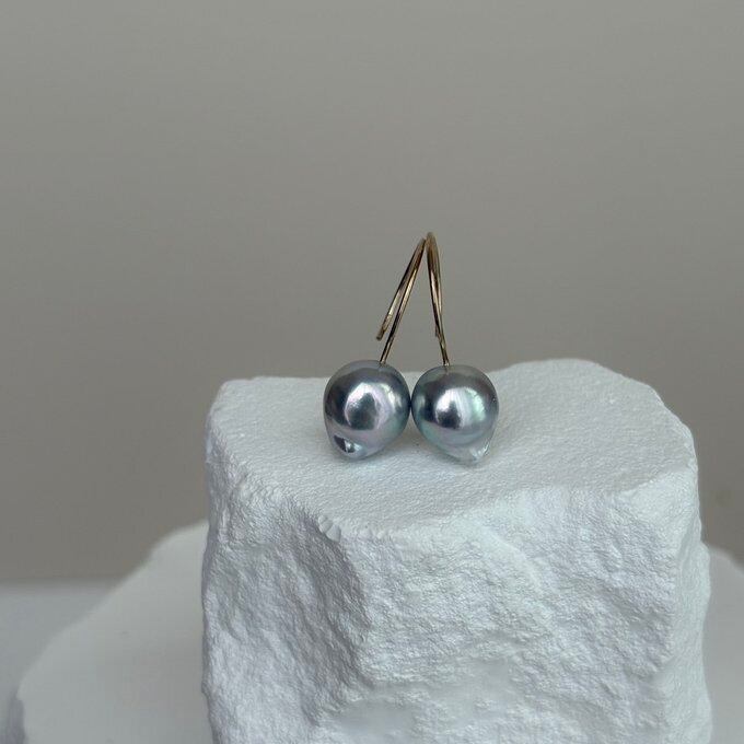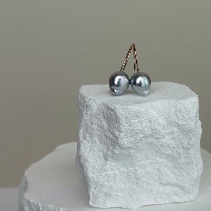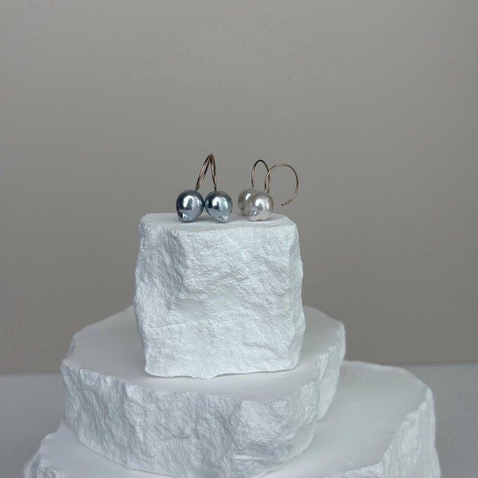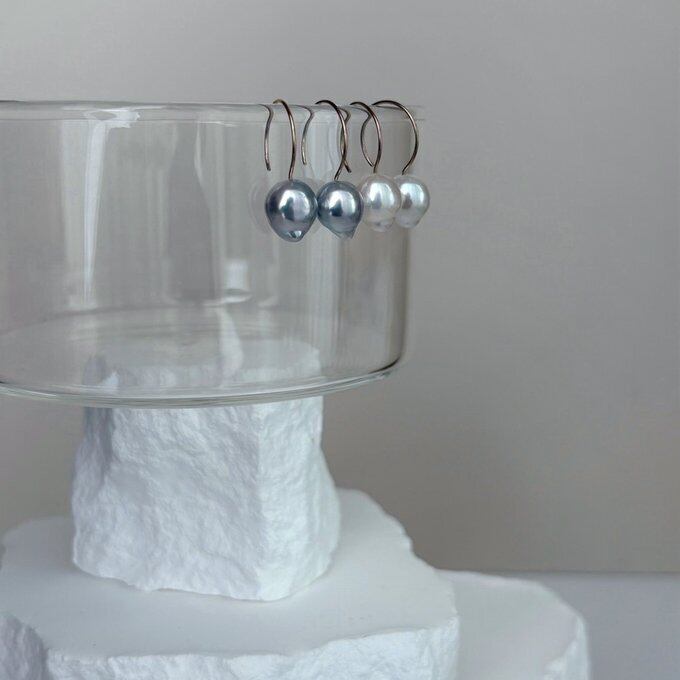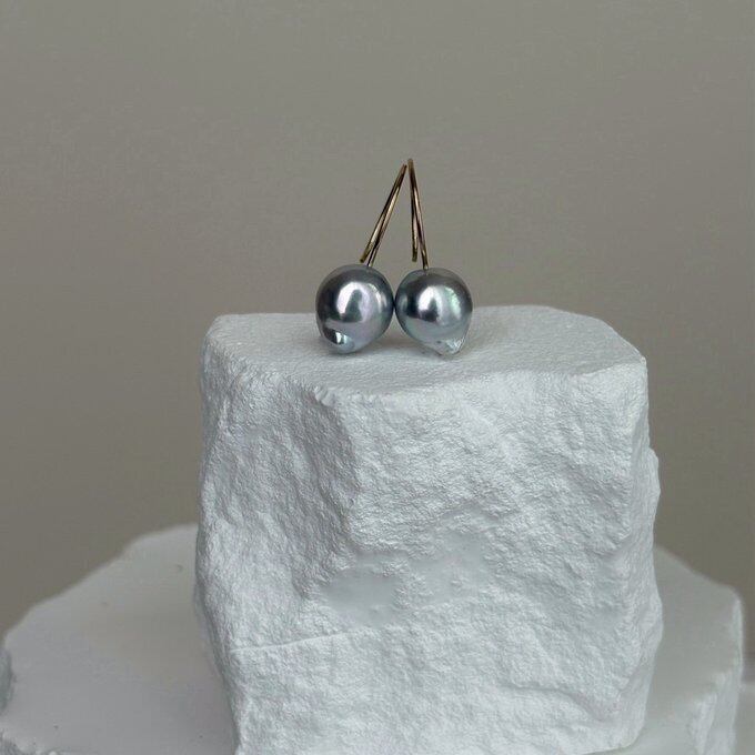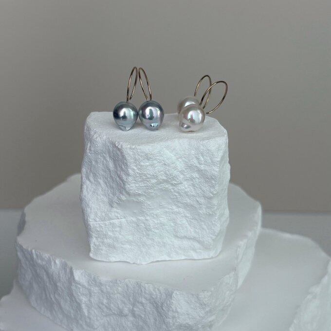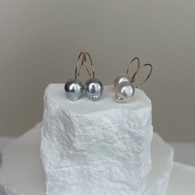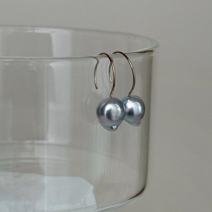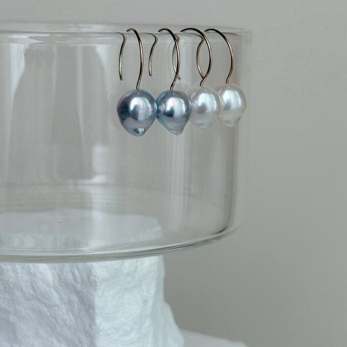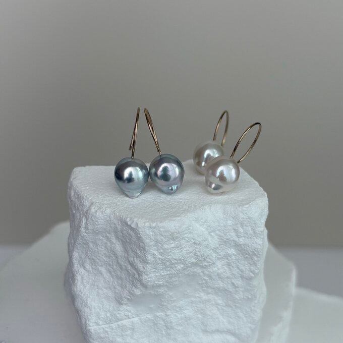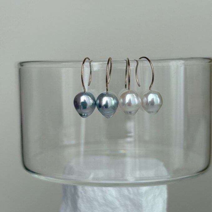 【1点もの】ナチュラルカラー アコヤ真珠のラウンドフックピアス スノードロップbluever.