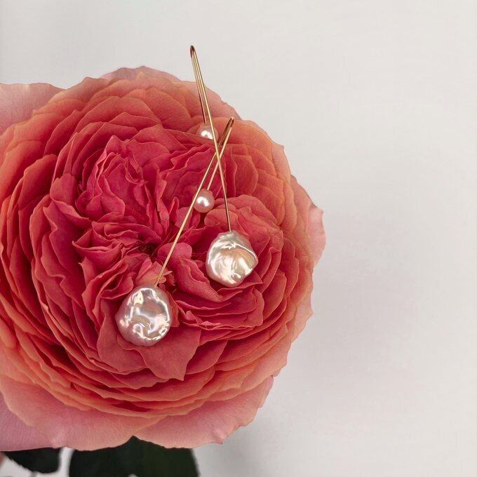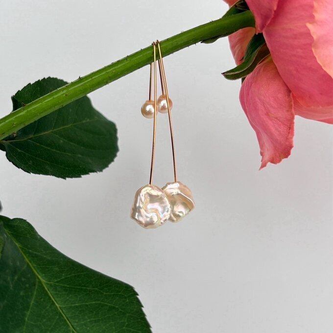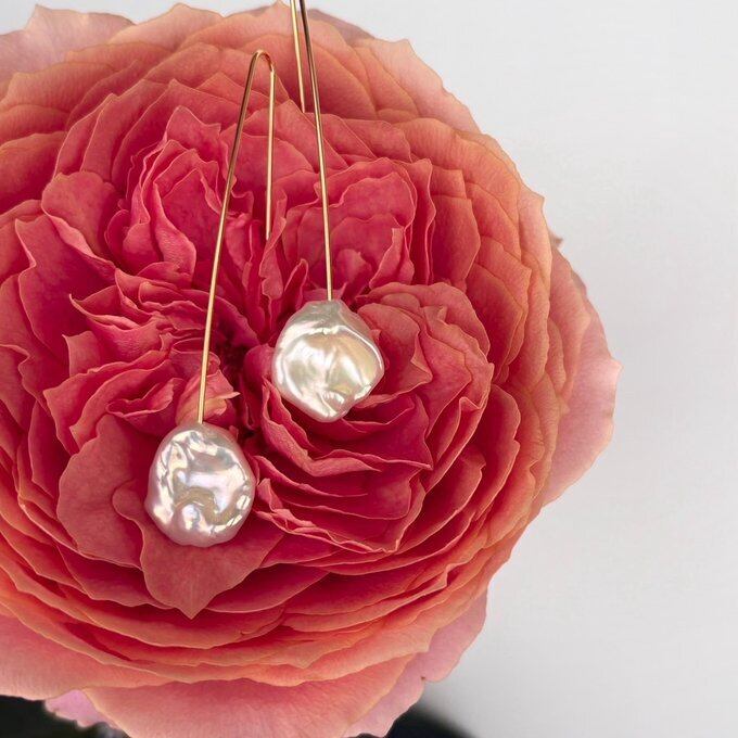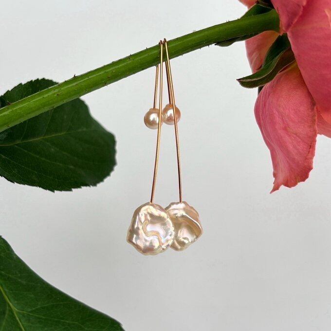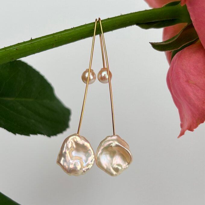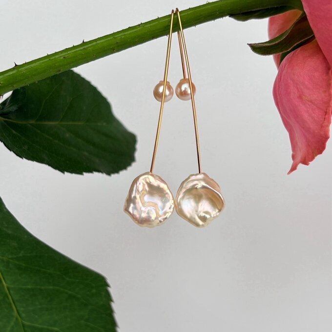 【15%OFF】:【1点もの】高品質 ペタルパールのロングフックピアス&パールキャッチ
