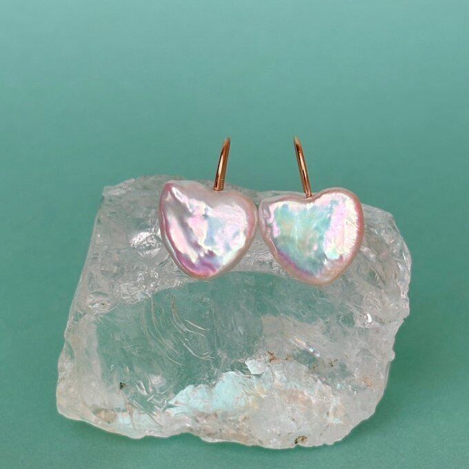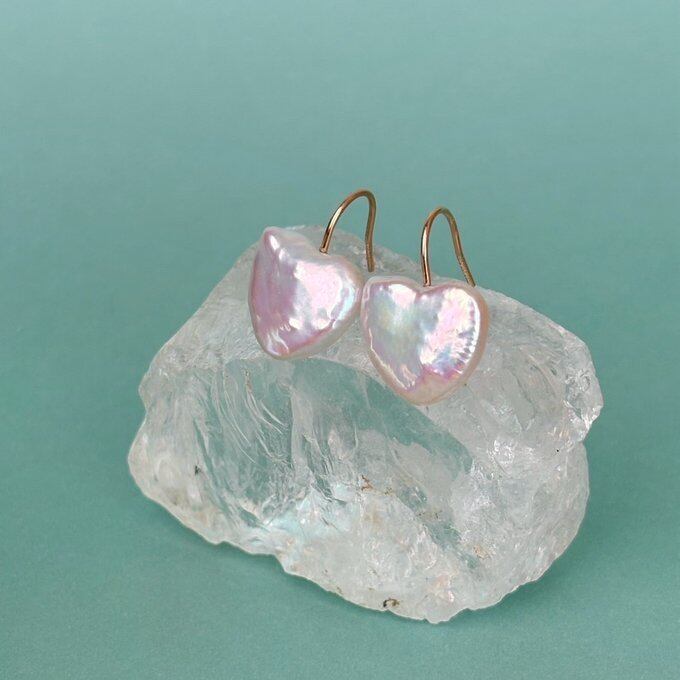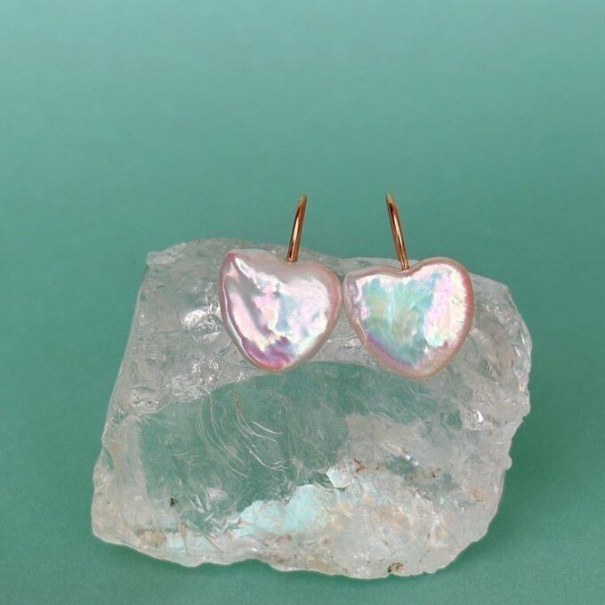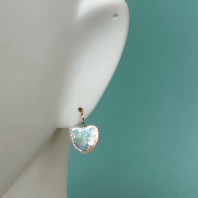 通常よりも干渉色が強いハートパールを厳選し、フックピアスにてご用意致しました。