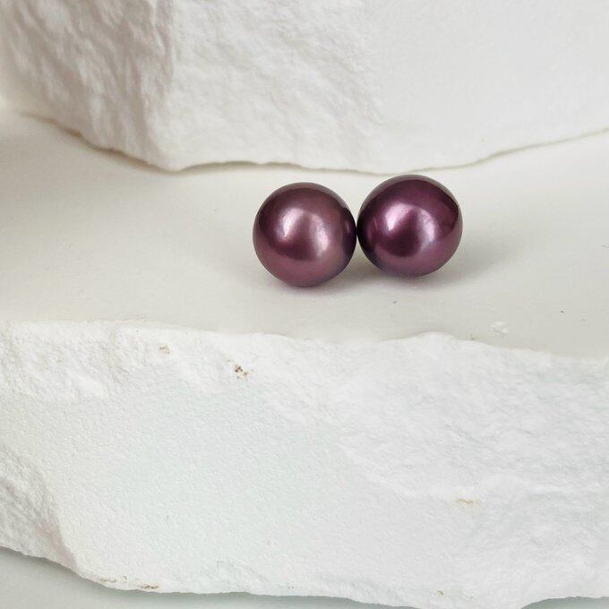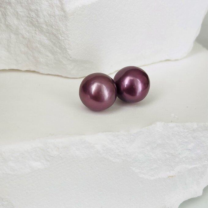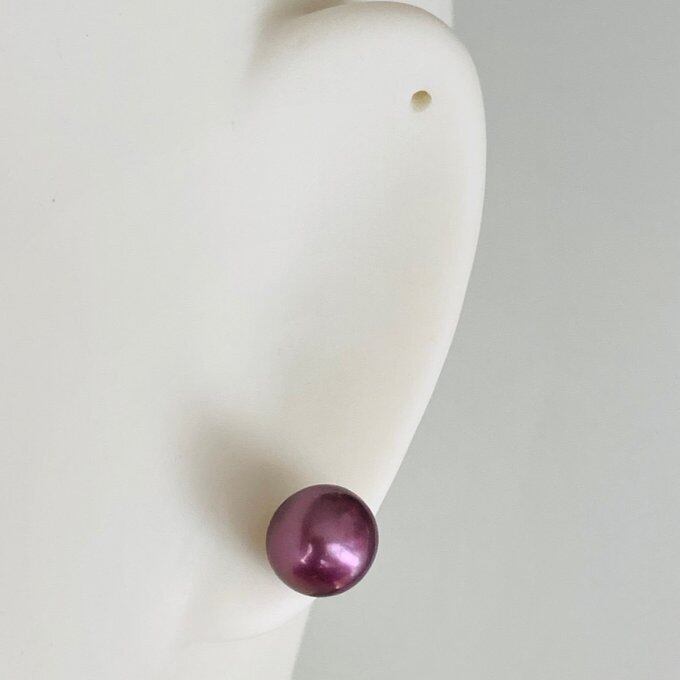 無穴 パープル系セミラウンドパール バロックパール ピアス、イヤリング