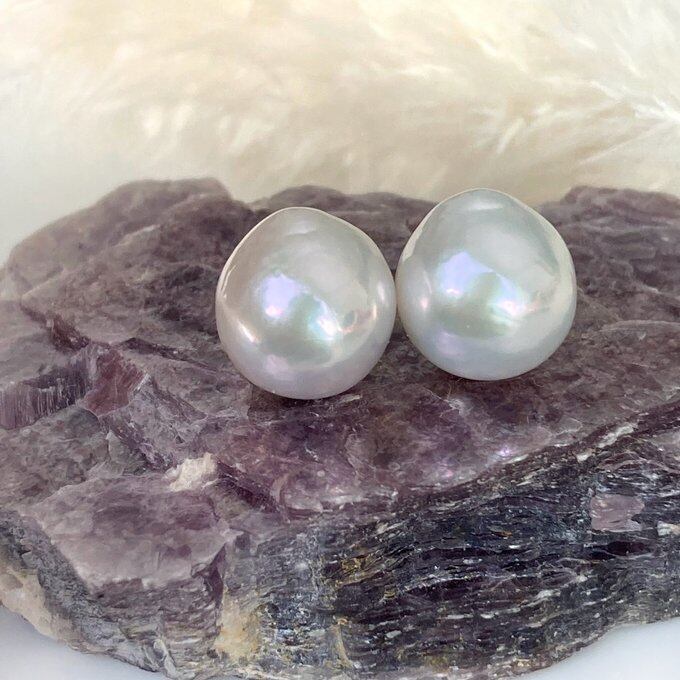存在感があり、つけるだけでオシャレになれる耳からこぼれるバロックパールのピアスです。