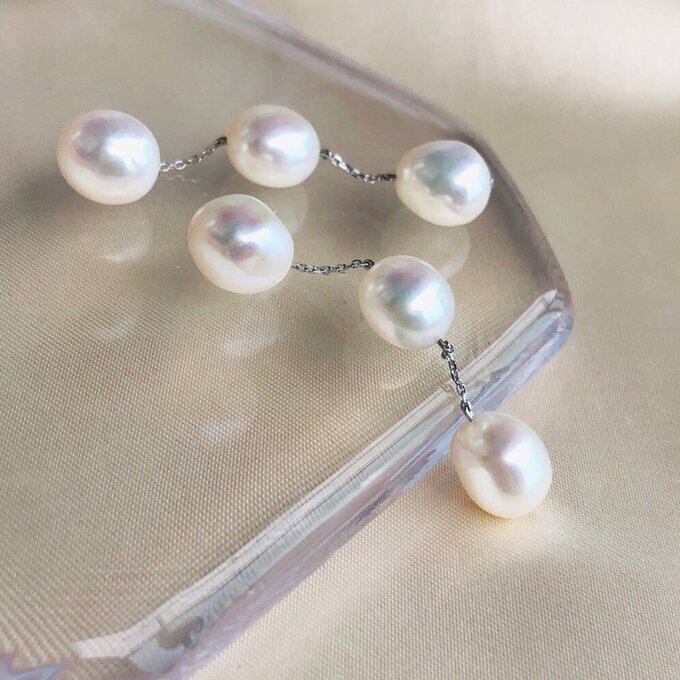 縦長のバロックパールを使用したピアス、イヤリングです。