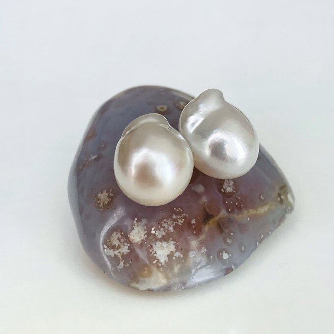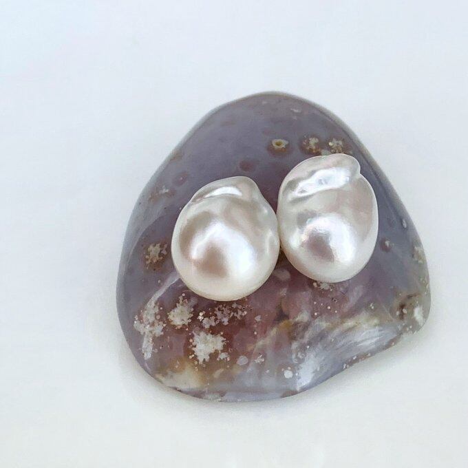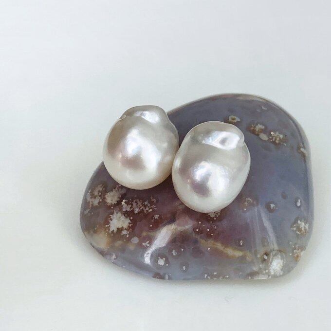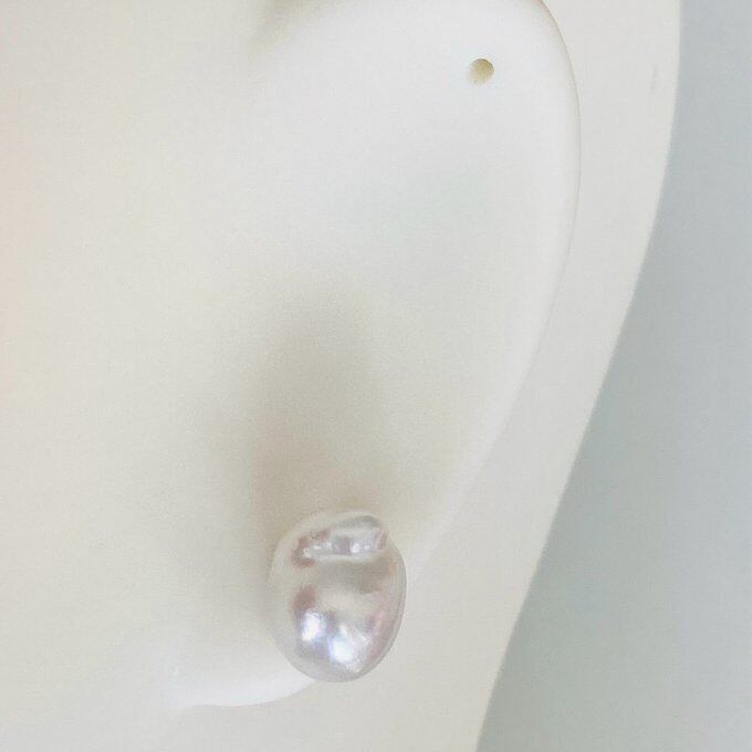 無穴 白蝶真珠のピアス、イヤリング バロックパール