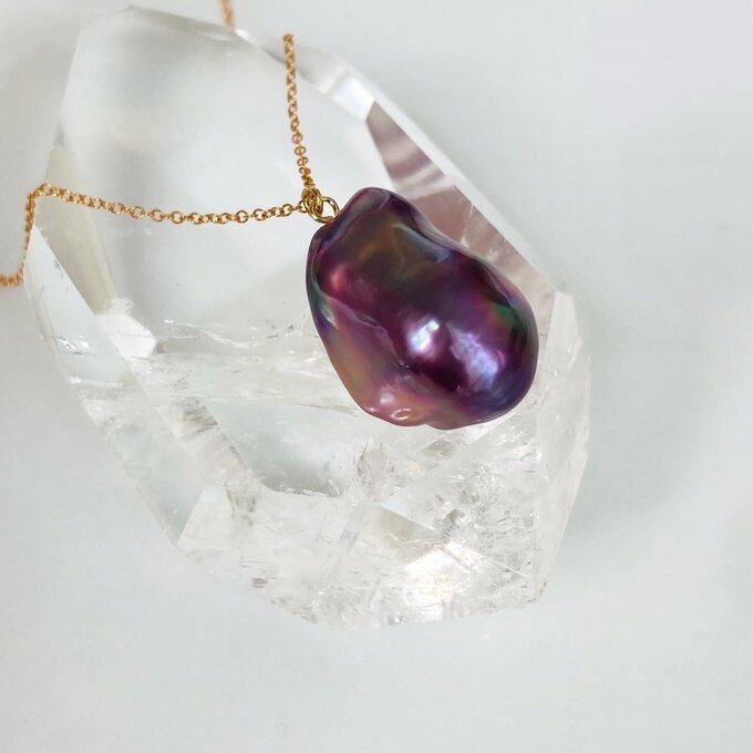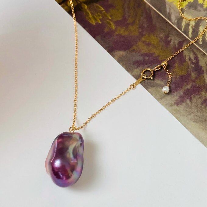 カラー、フォルム、品質ともに理想的なバロックパールをネックレスにてご用意致しました