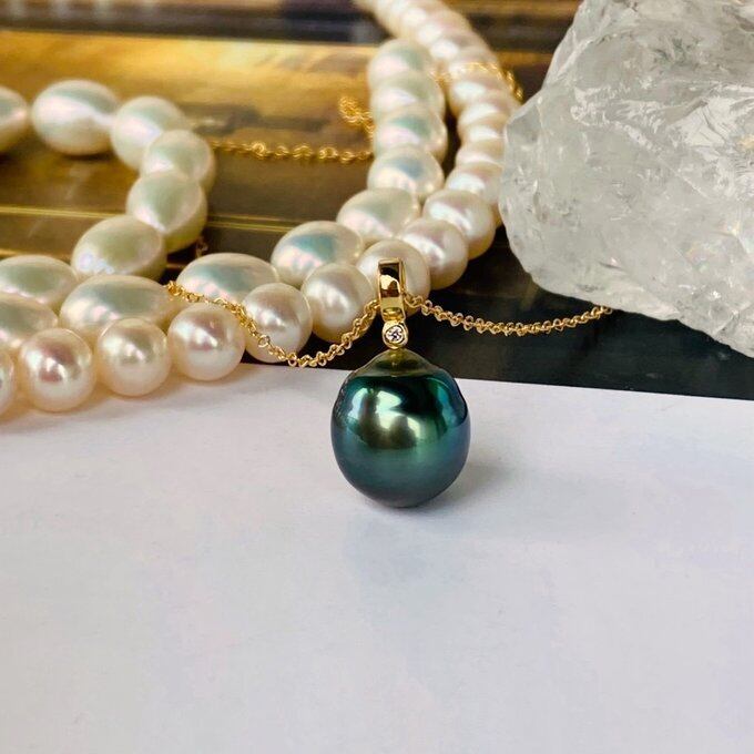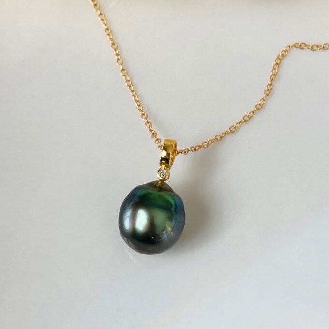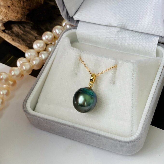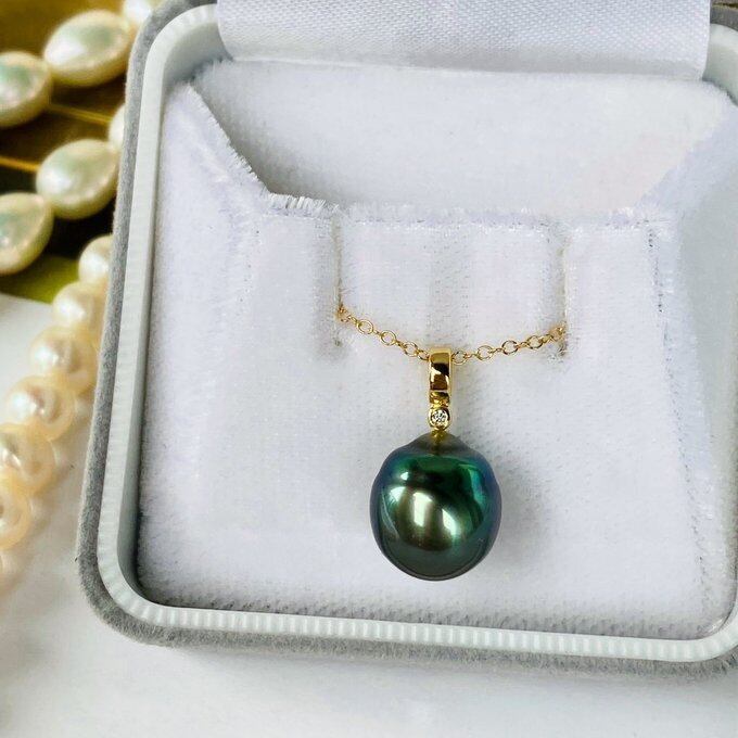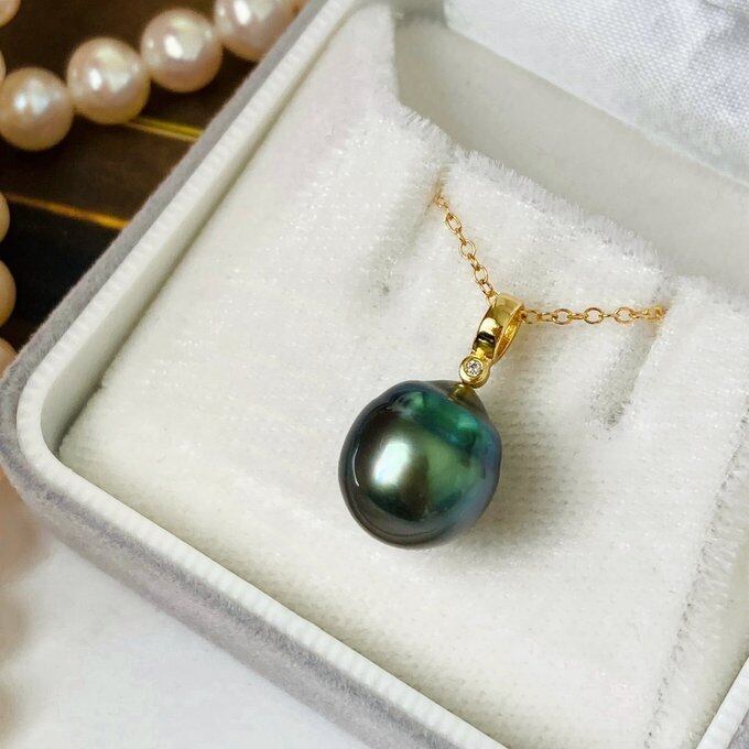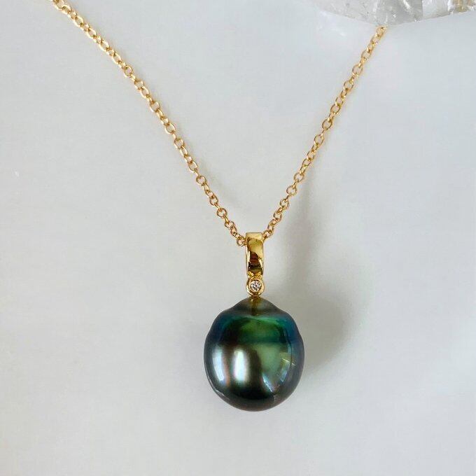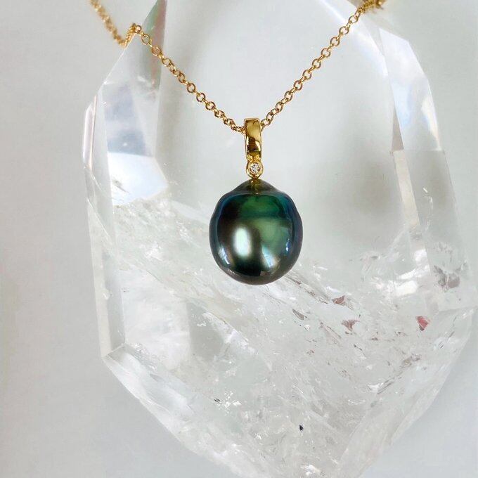 ブラックベースですが、グリーンの存在感もある黒蝶真珠。