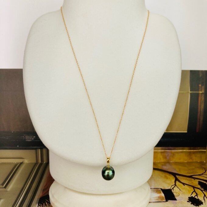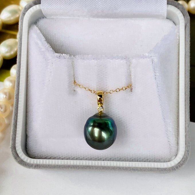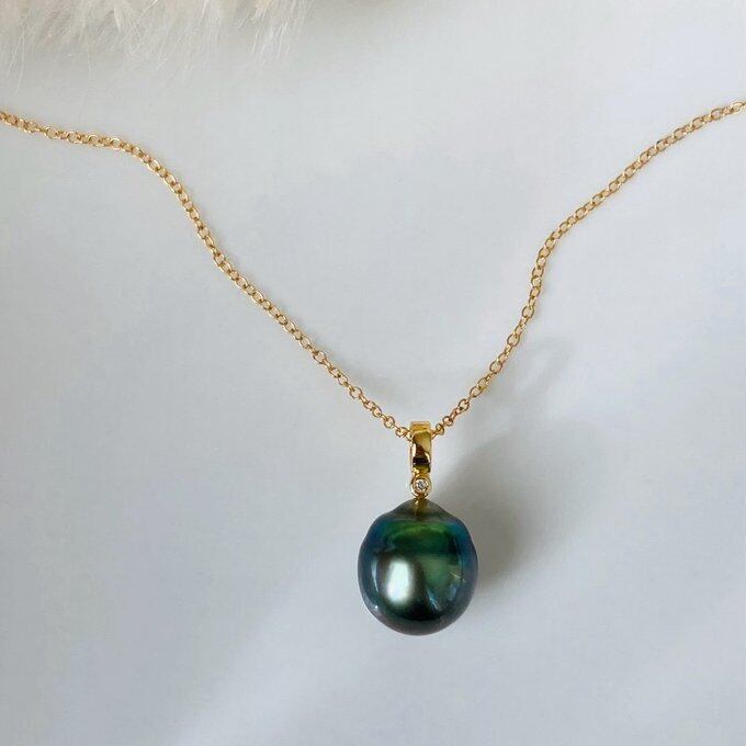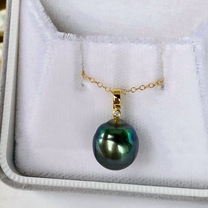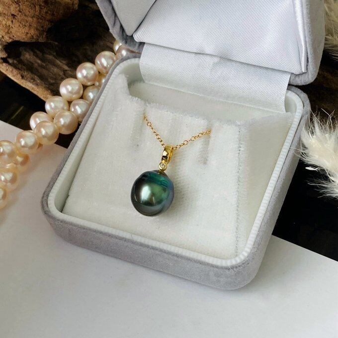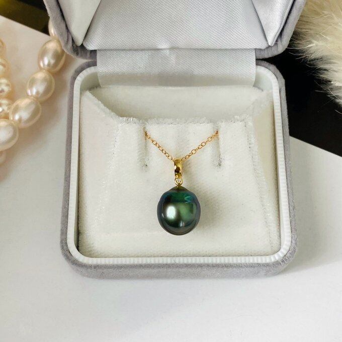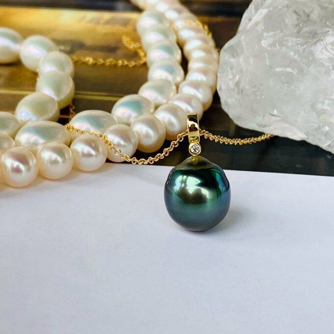ブラックベースですが、グリーンの存在感もある黒蝶真珠。