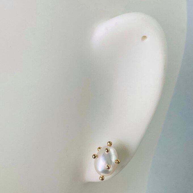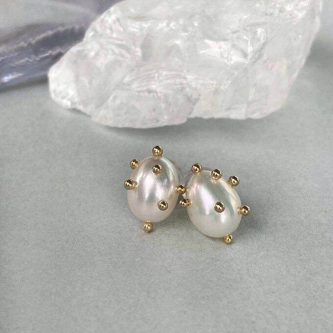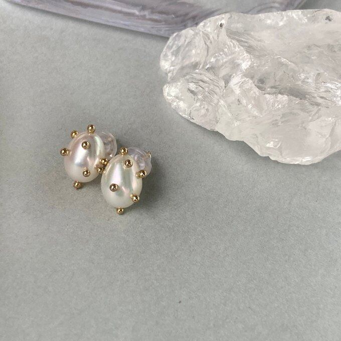 と思い、ovalパールをドットでおめかしし製作したバロックパールのアクセサリー。