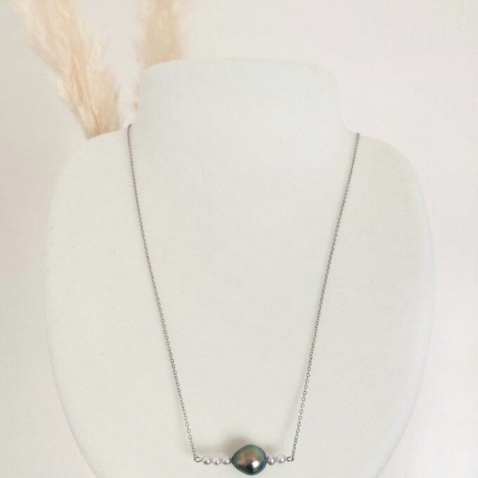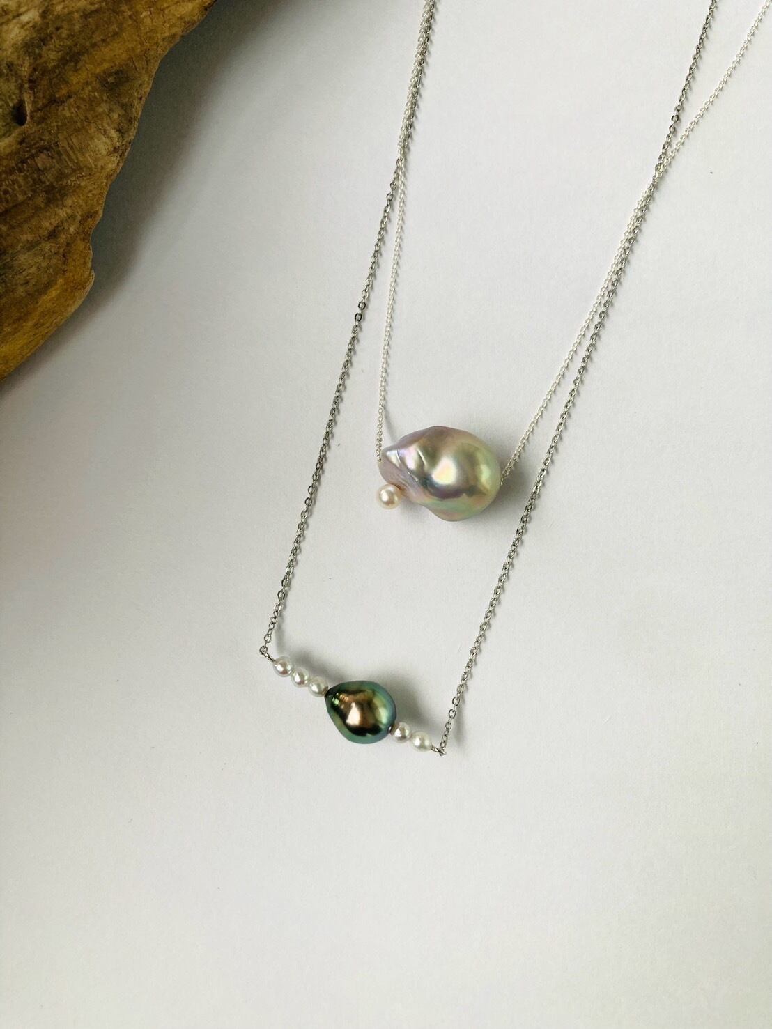 【一点もの】黒蝶真珠+5pearlsパールネックレス バロックパール