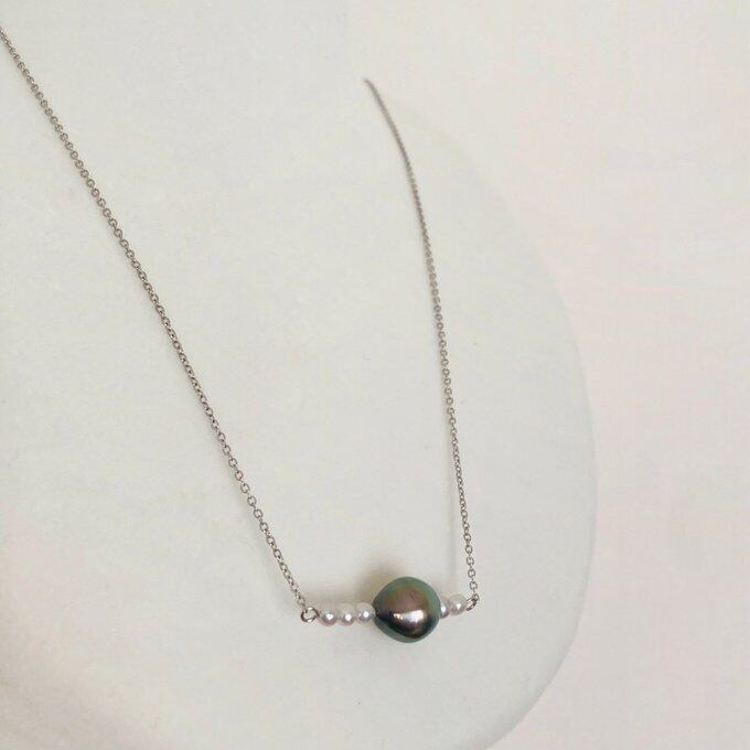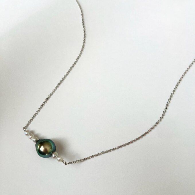 ブラックベースの中にグリーンの存在感がある黒蝶真珠。
