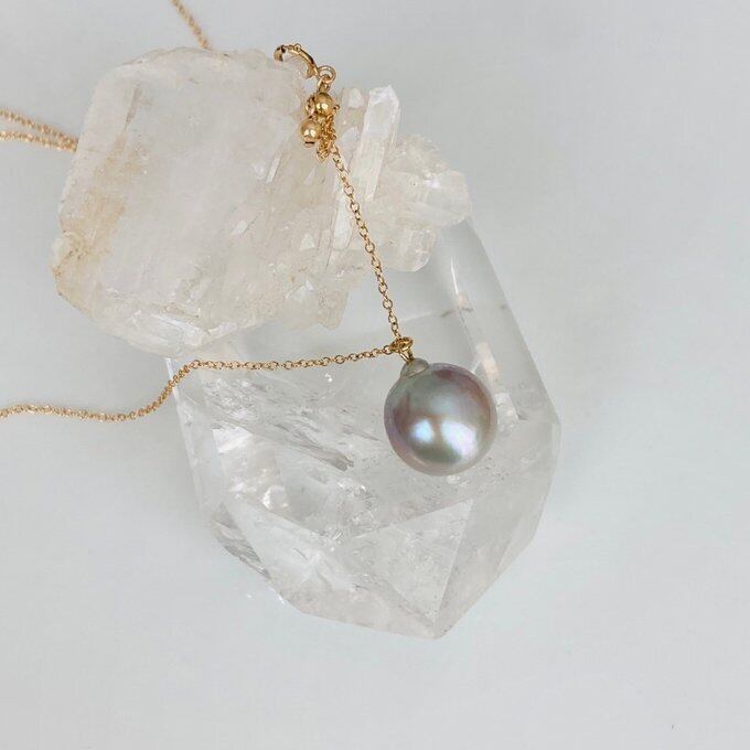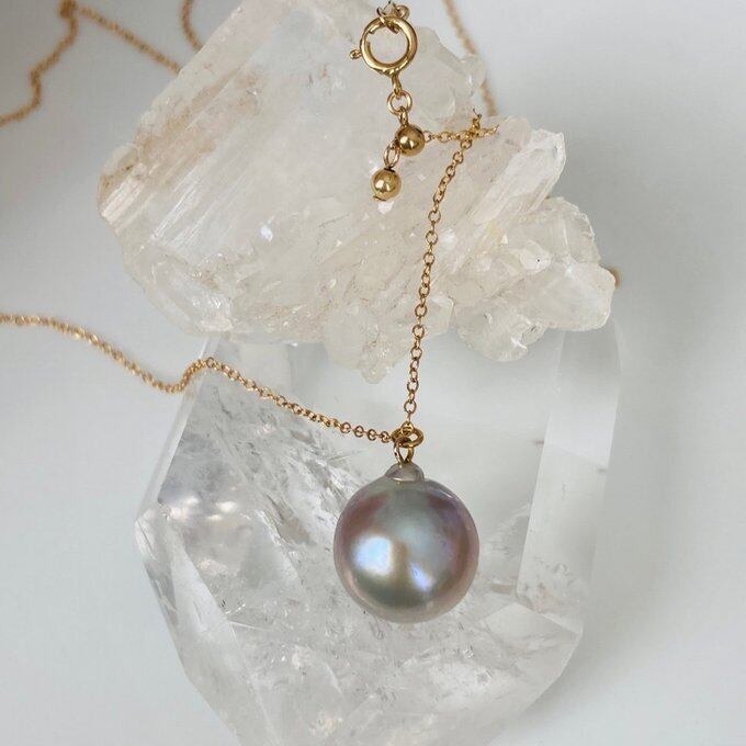 一点もの 14kgf 調整可能ボールチェーン グレーバロックパールロングネックレス