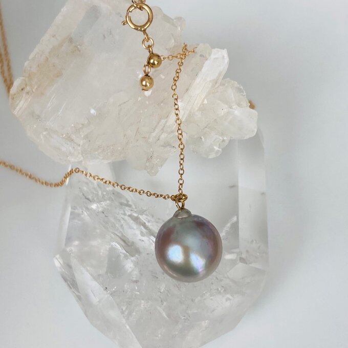 その中でもピアスに選んでいるよりも品質が高い粒を選び、ネックレスに仕立てました。