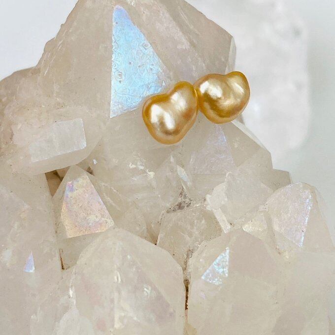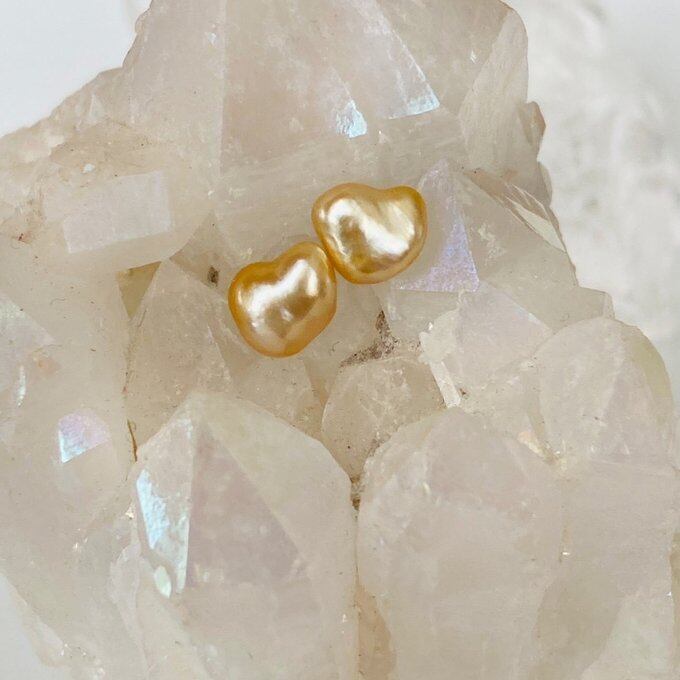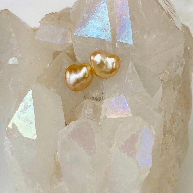 一点もの 希少 k10 ハート白蝶真珠(ゴールデン)ケシパールピアス 南洋真珠