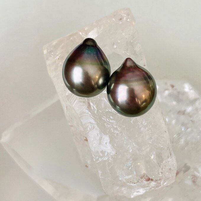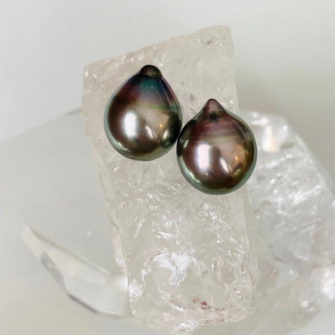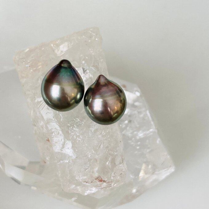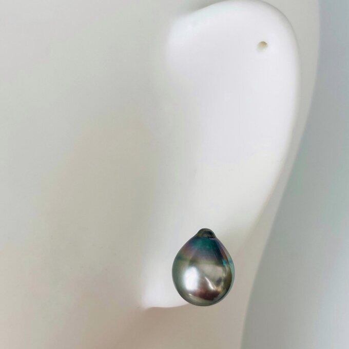 無穴 ドロップ型黒蝶真珠 バロックパールピアス イヤリング
