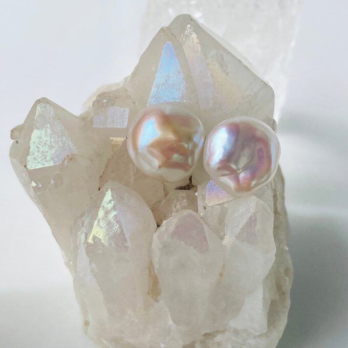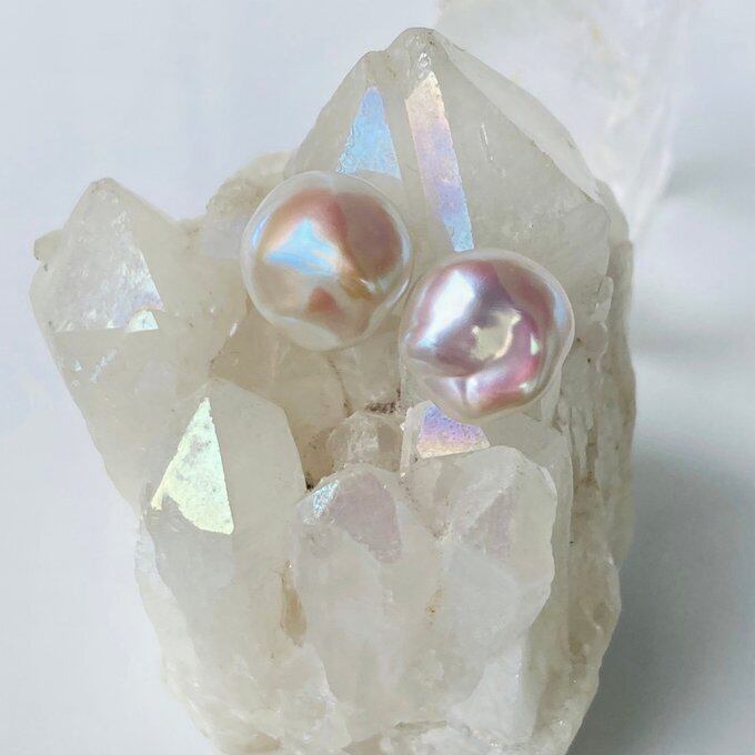 ホワイトベースですが傾きによってはピンク系の干渉色を見せてくれるバロックパールです