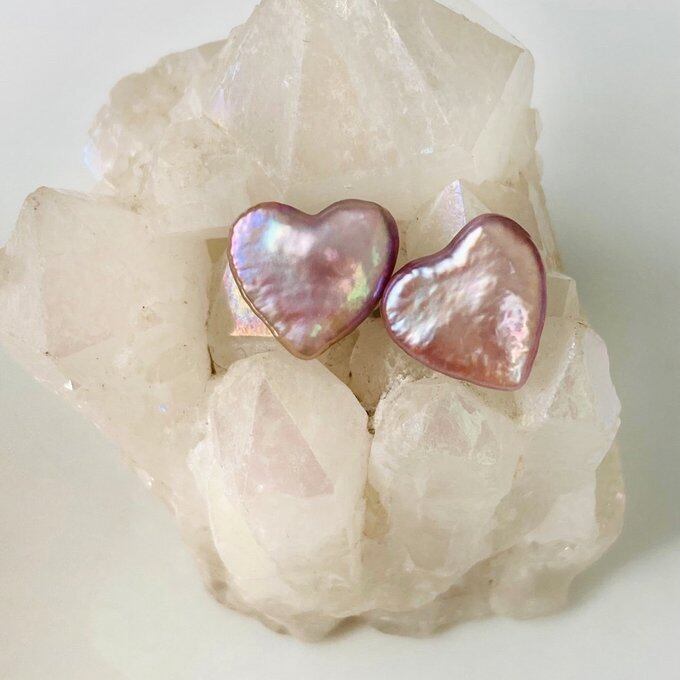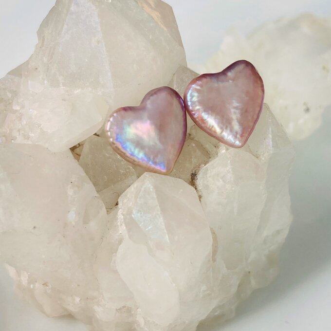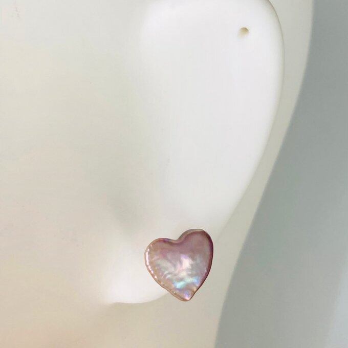 無穴 モーヴピンク系ハートパールピアス イヤリング