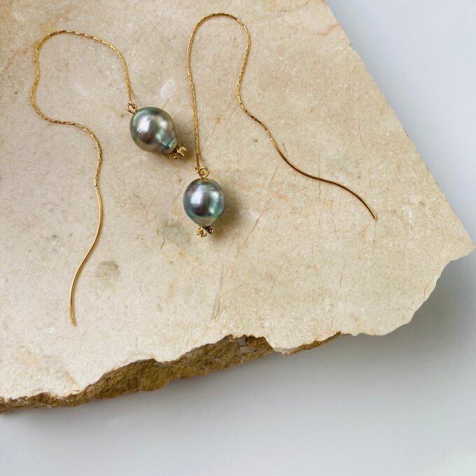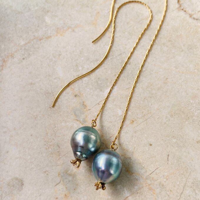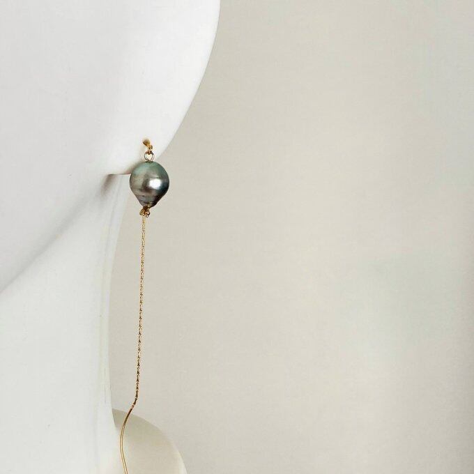 一点もの 黒蝶真珠 揺れるお花 バロックパールチェーンピアス
