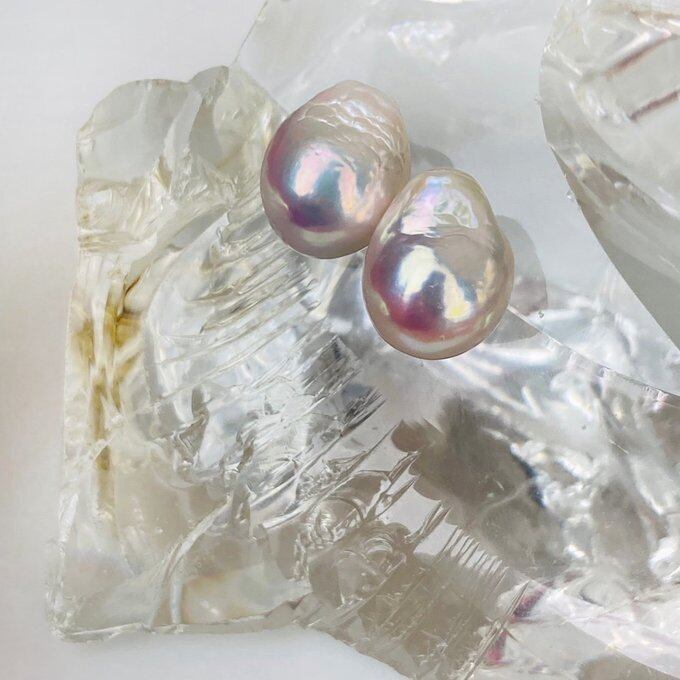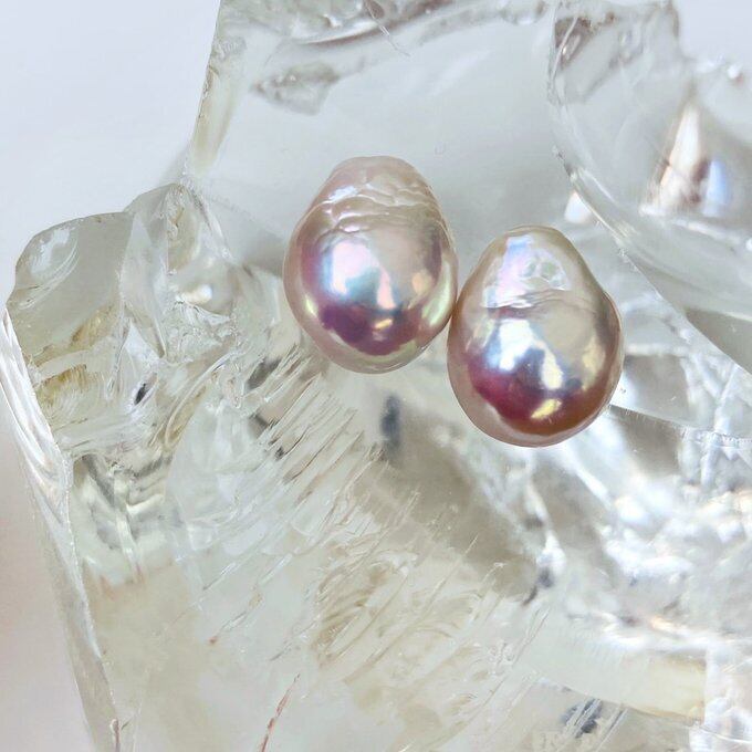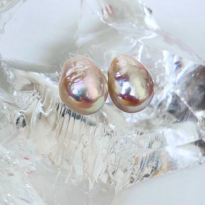 ホワイトベースのパールですが、お写真のように屋外等 光が当たるとテリが強く通常より干渉色が多めに出るオーロラ系のバロックパール