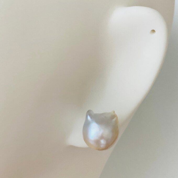 【50%OFF】一点もの ネコちゃんバロックパール(白蝶真珠)のピアス、イヤリング