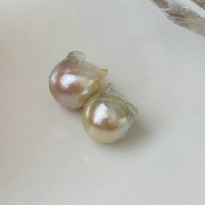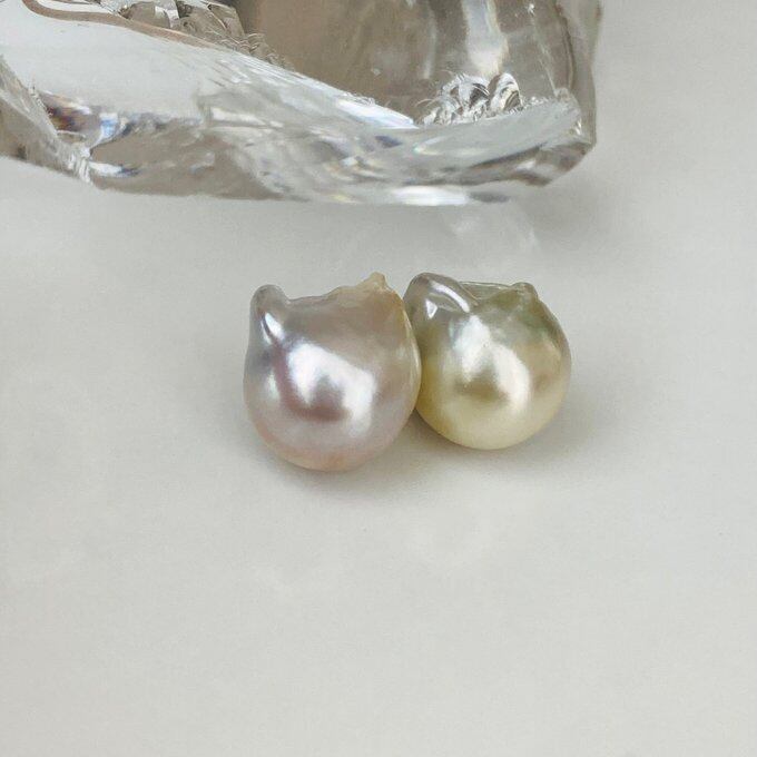 ネコ蝶真珠と呼ぶに相応しい、白蝶真珠のバロックパールです。