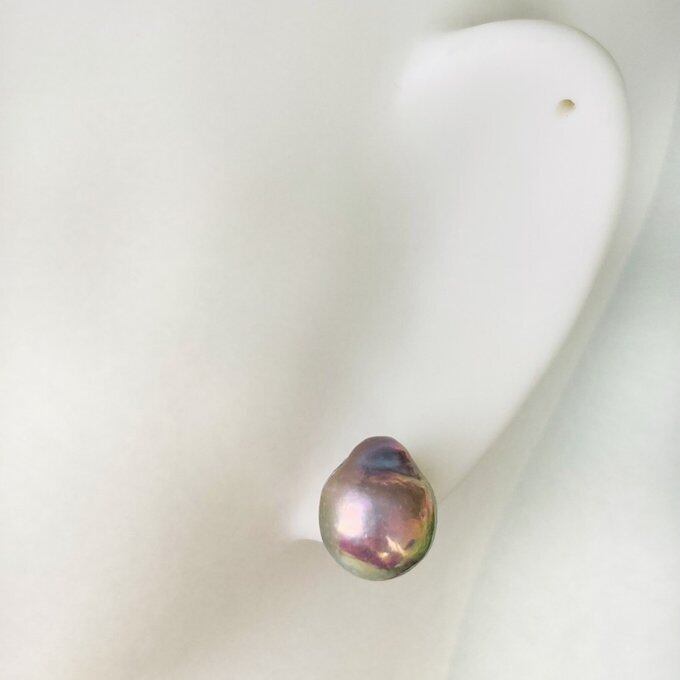 なかなか綺麗な色味のグレーパールは見つからず◎ですが、裏面に産地による補修跡、あと側面に一部ムラがあるためかなりお安くなっています。付けている分にはかなり分かりづらいですが、気になる方は慎重にご検討下さい。