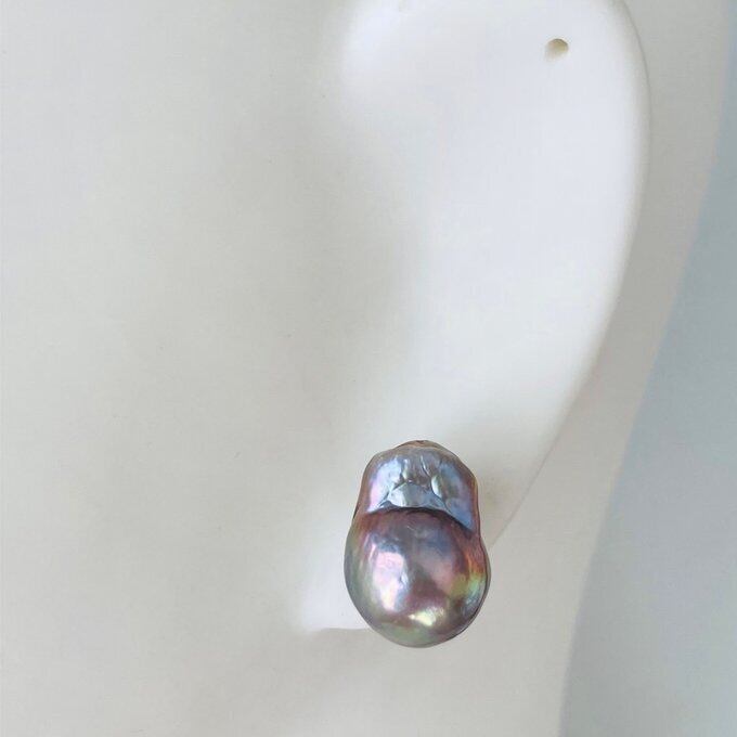 Mサイズ グレー バロックパールピアス バロックパールイヤリング オイスターパール