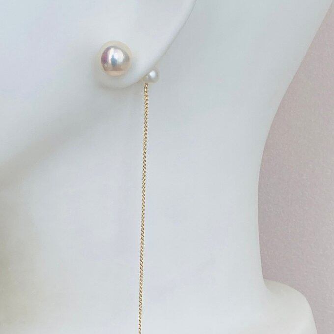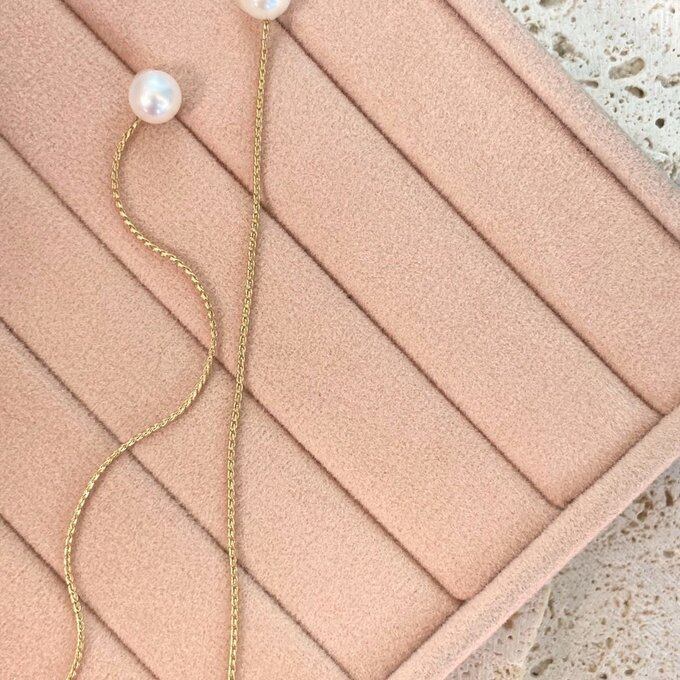 なかなか出会えなかった本物のパールを使ったキャッチ。そしてパールから長めの揺れるチェーンをつけお洒落度をupさせる大人可愛いアイテムをご用意致しました。