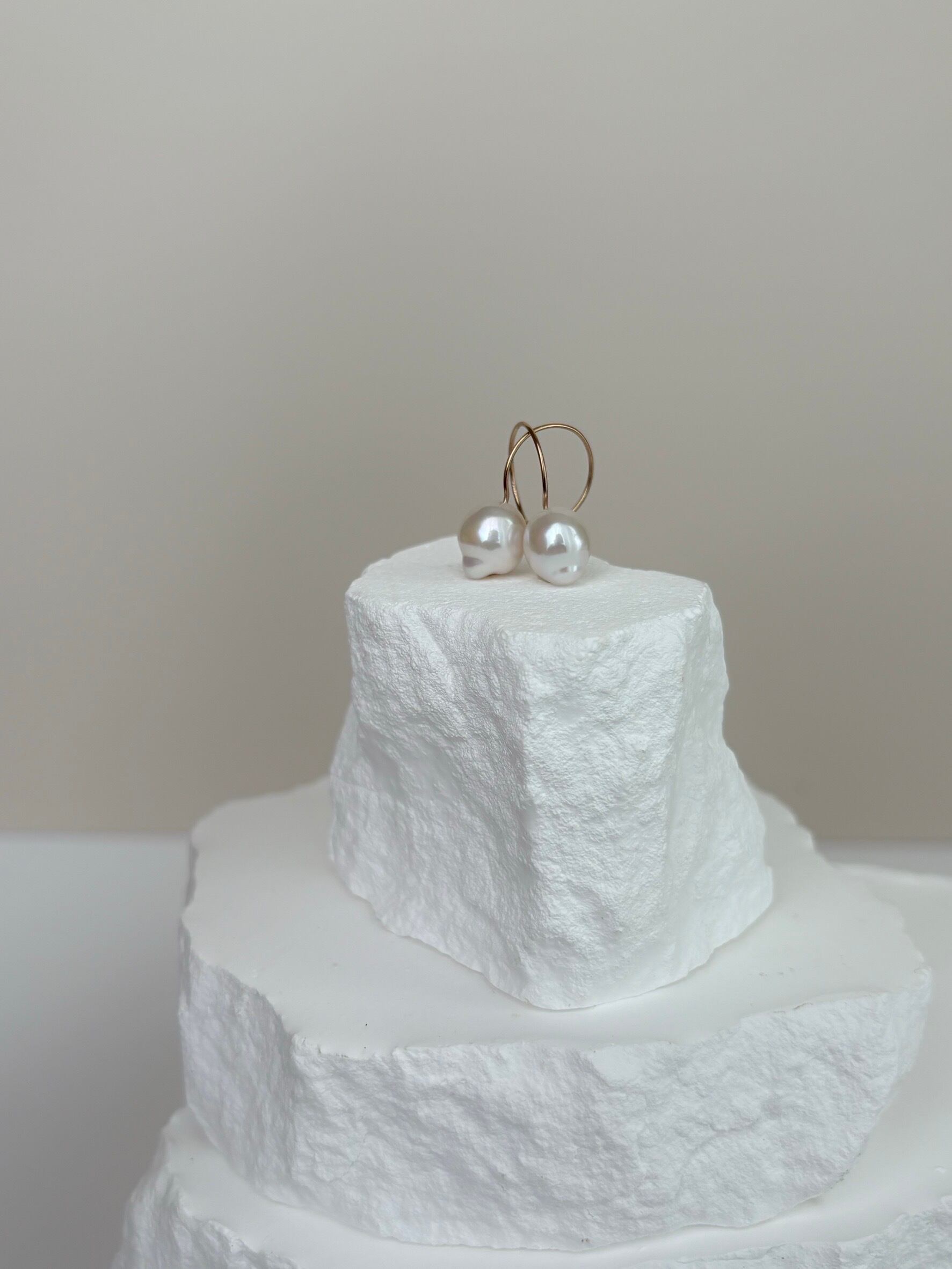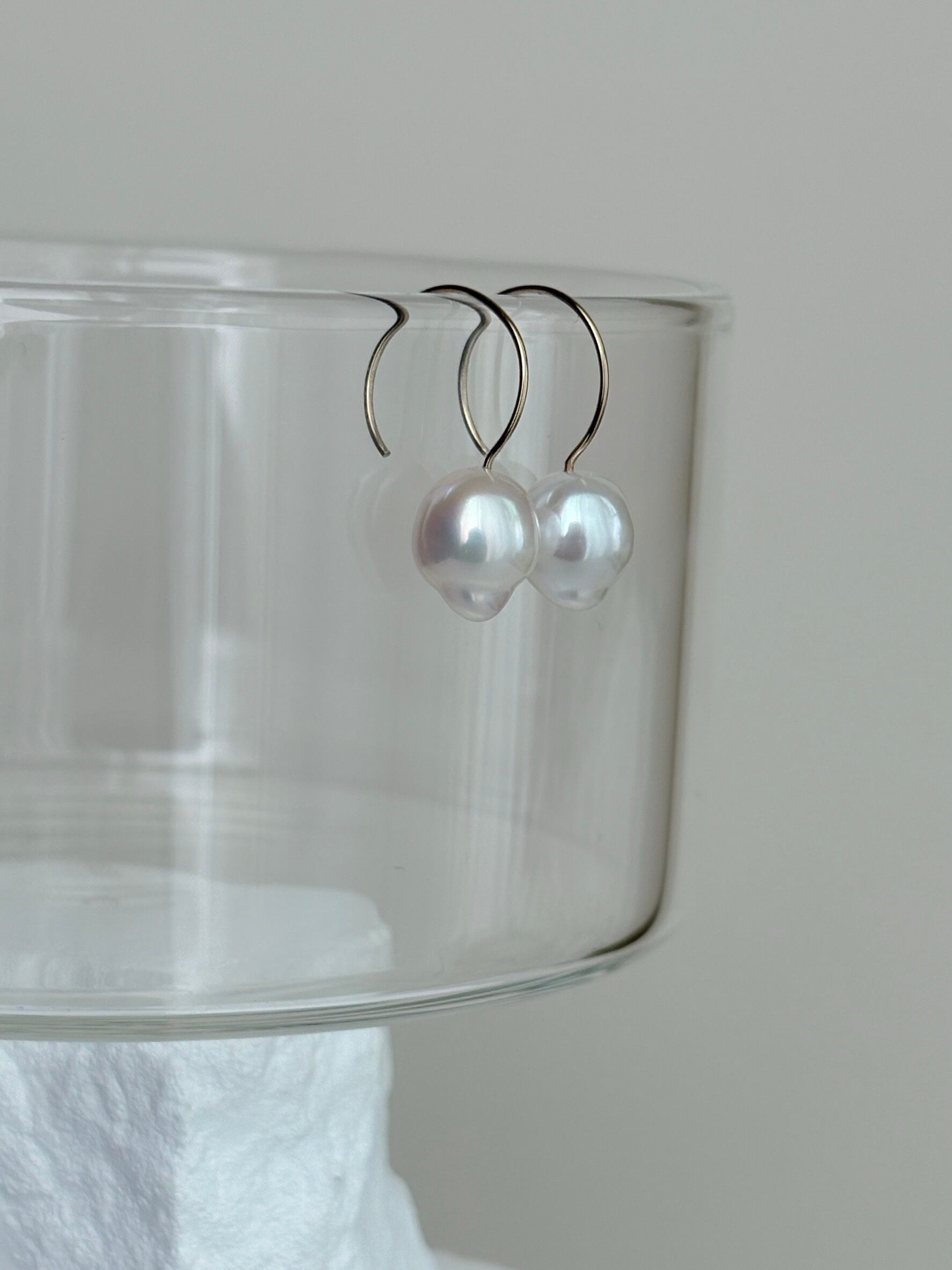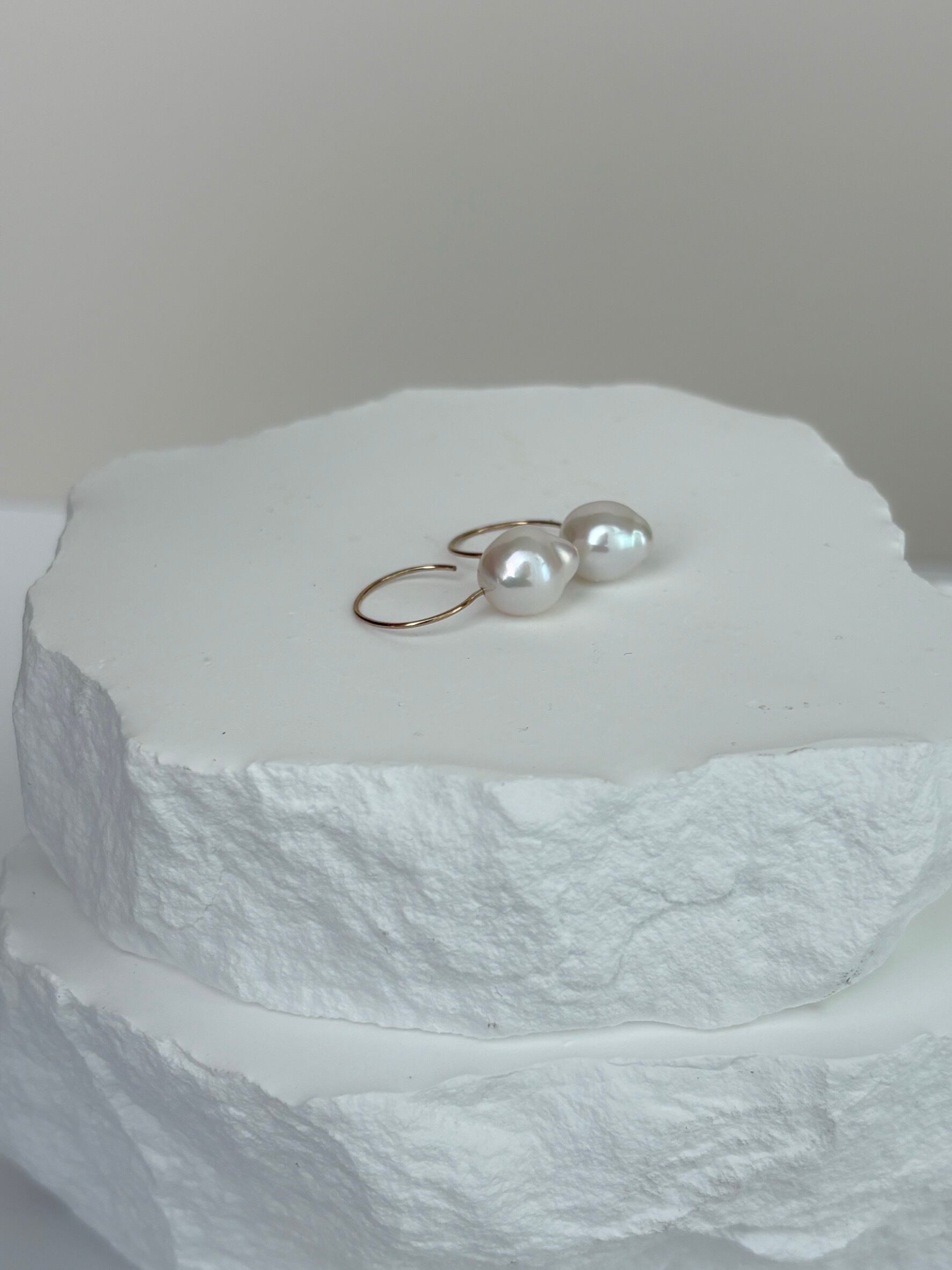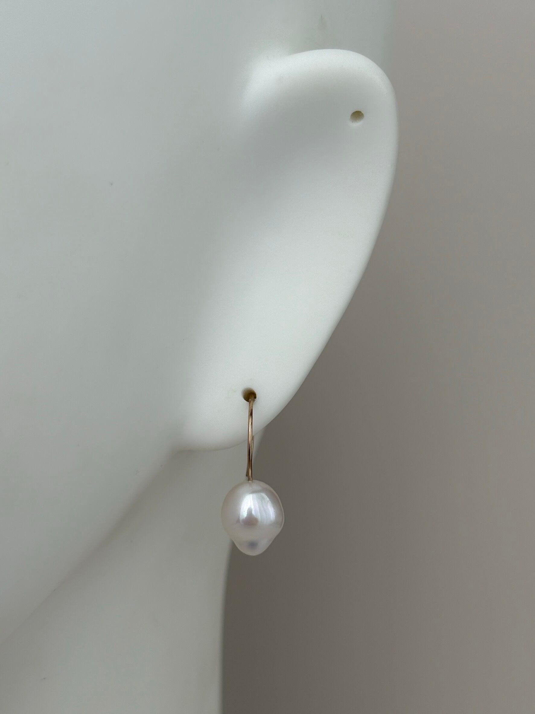 【1点もの】ホワイトカラー バロックパールのラウンドフックピアス スノードロップwhitever.