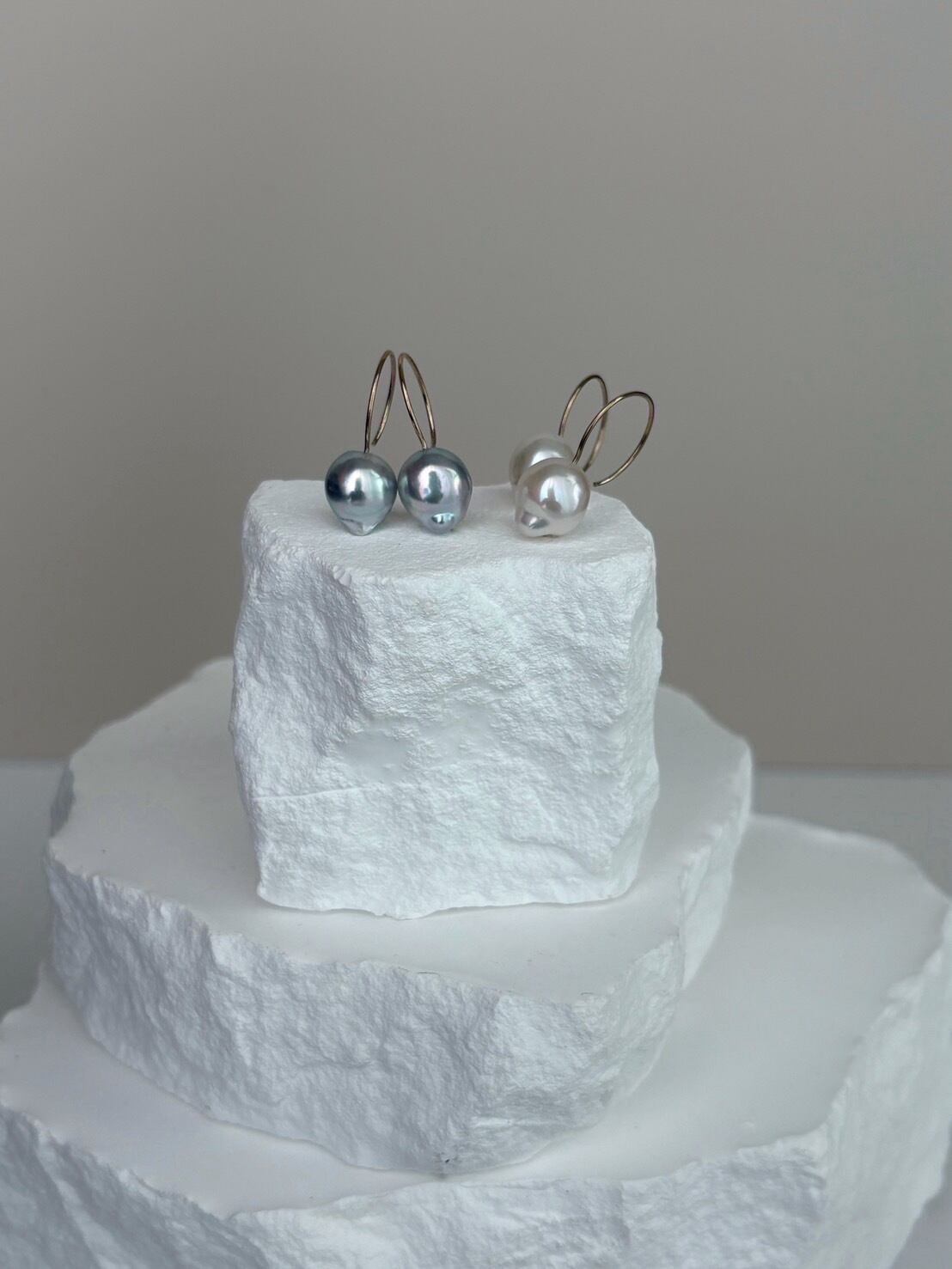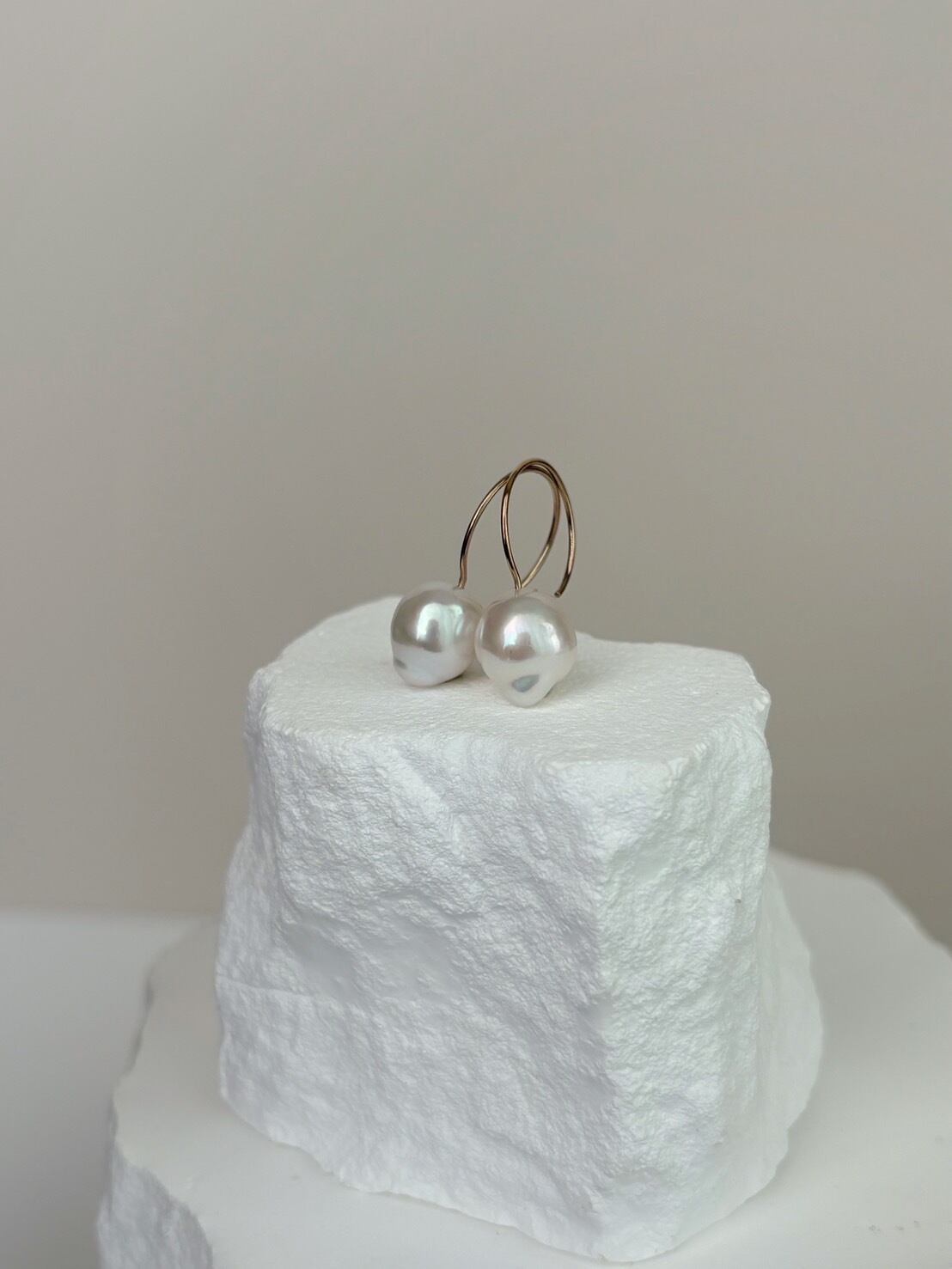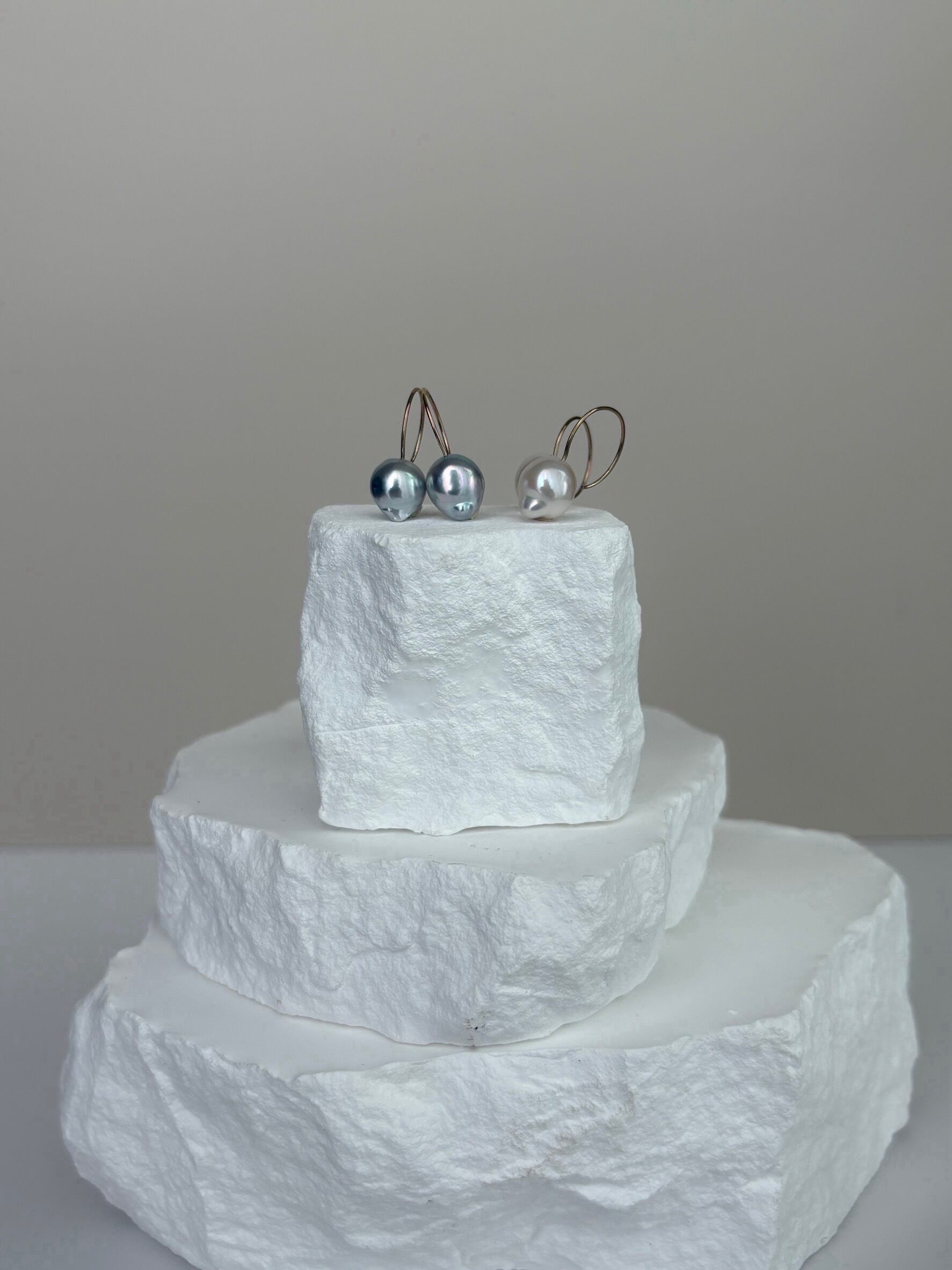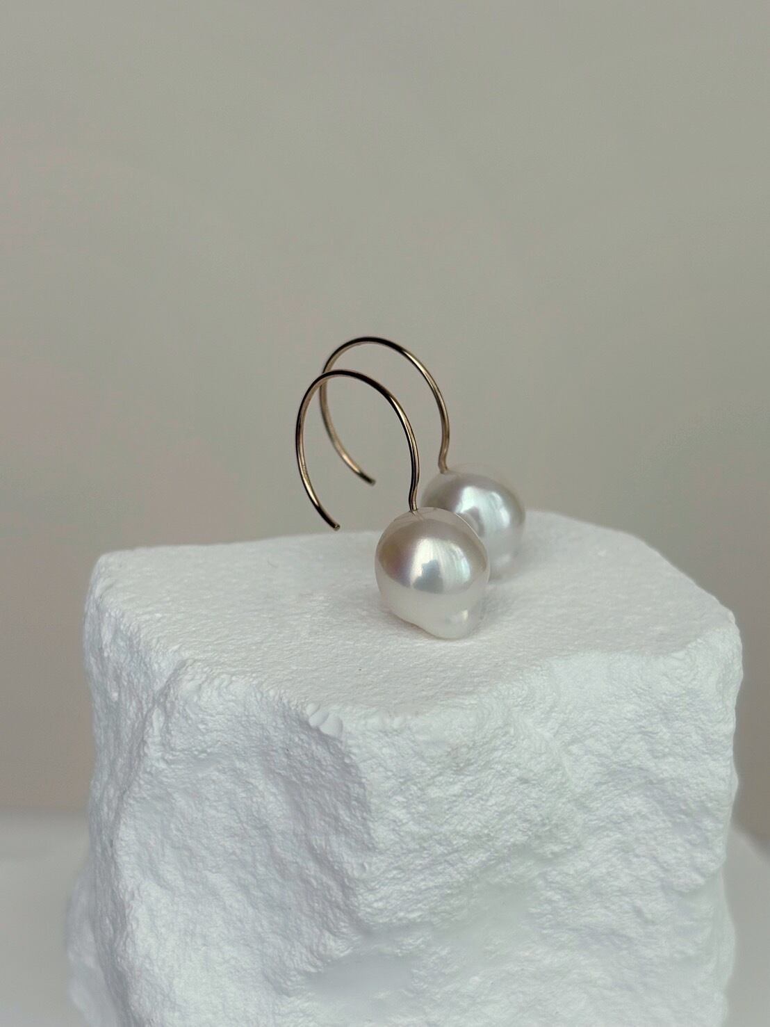 【1点もの】ホワイトカラー バロックパールのラウンドフックピアス スノードロップwhitever.