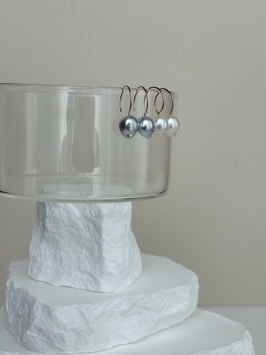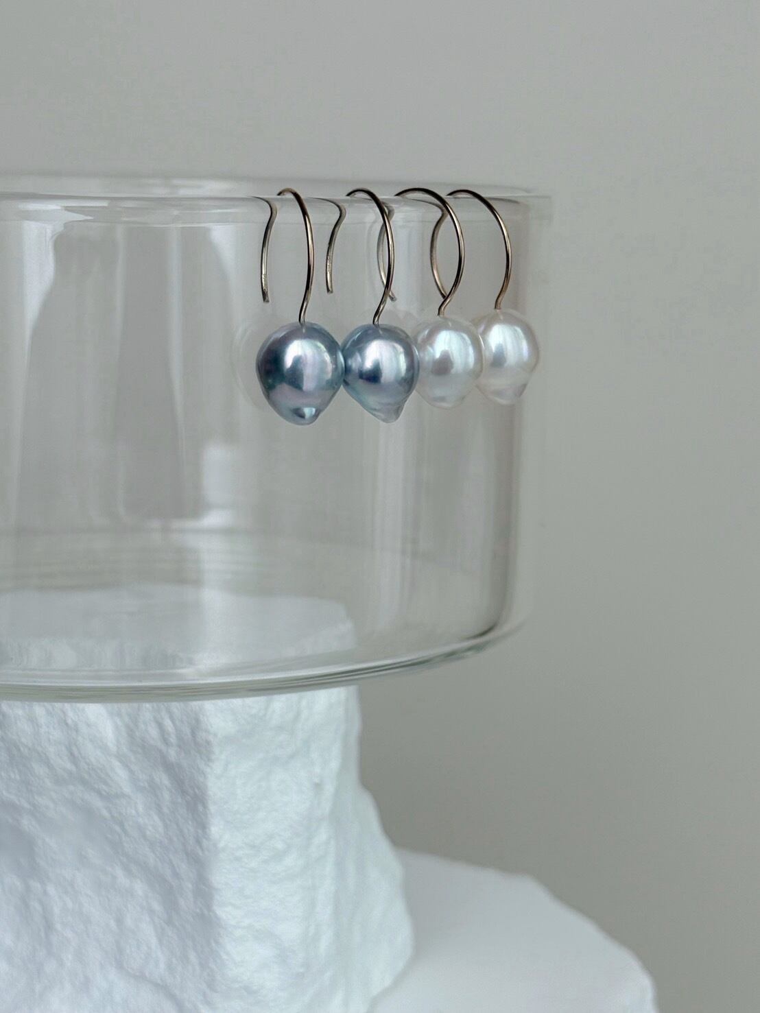 こちらはお写真ホワイト系、freshwater pearlのページとなり色違いの青いパールは付属せず別のページにてご案内しております。