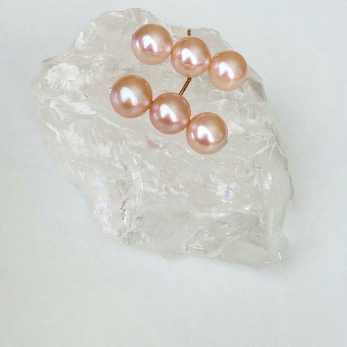 染めていない自然の柔らかいピンクを片耳に3粒ずつつけたTPO選ばず使えるアクセサリー