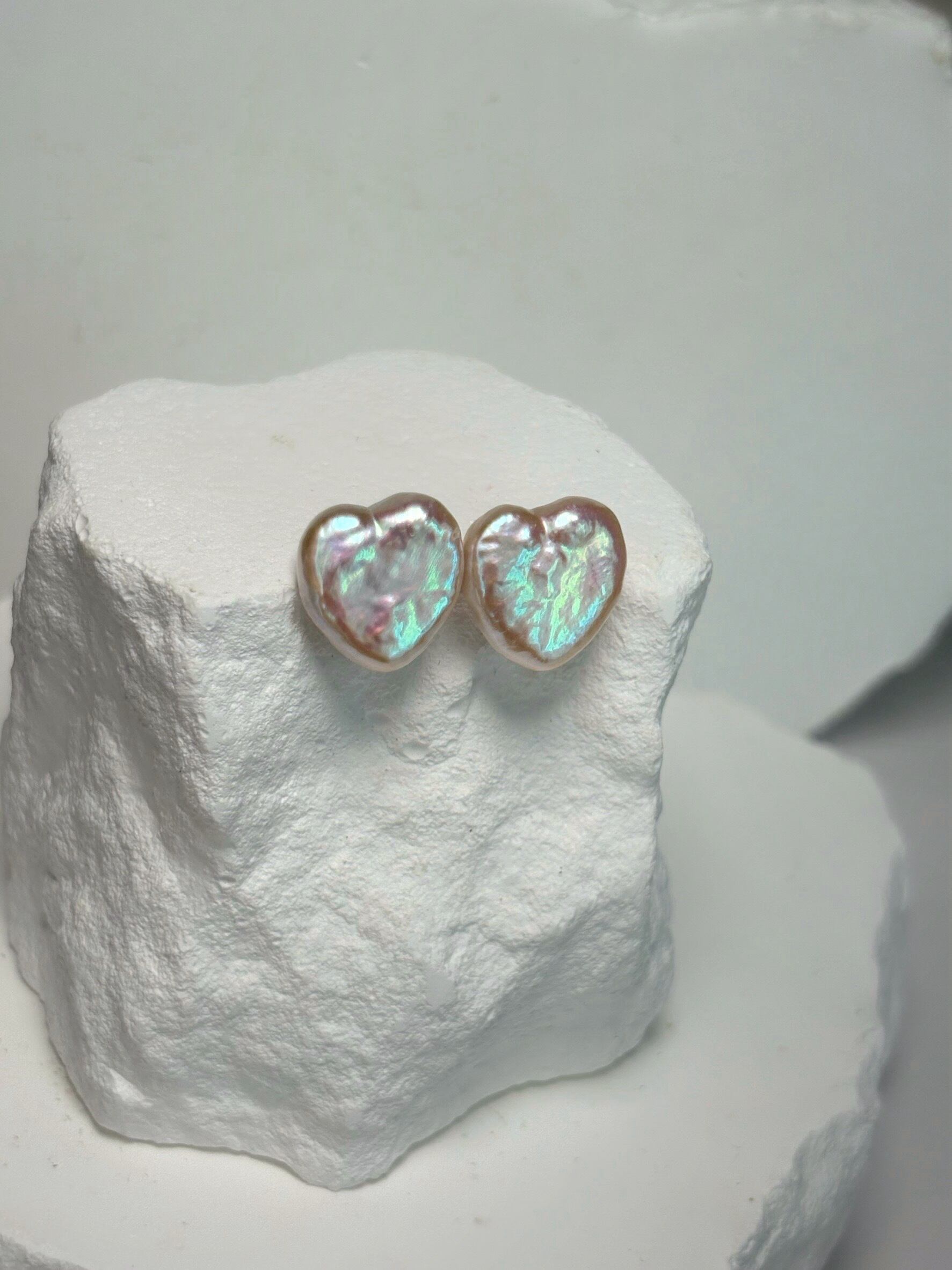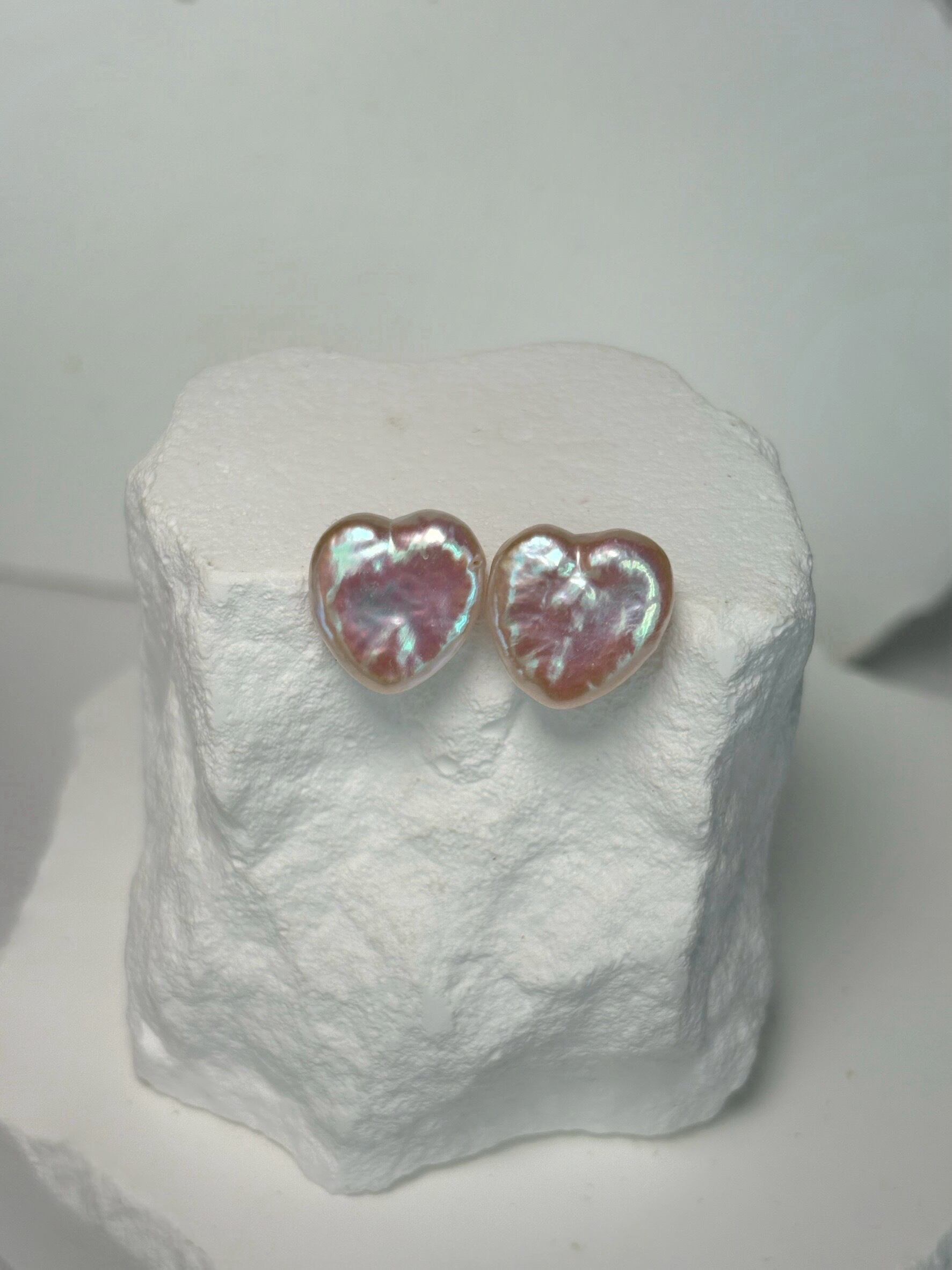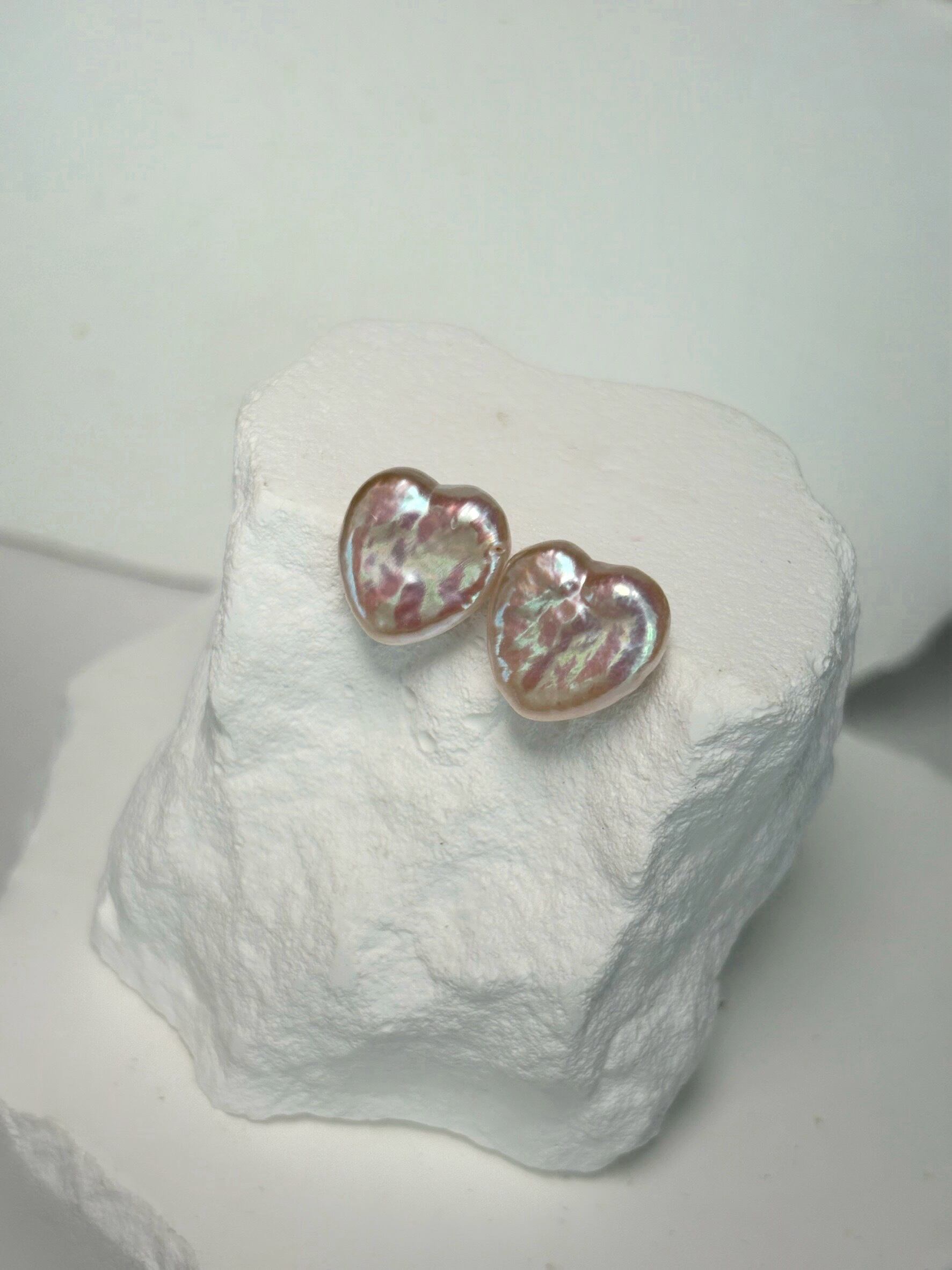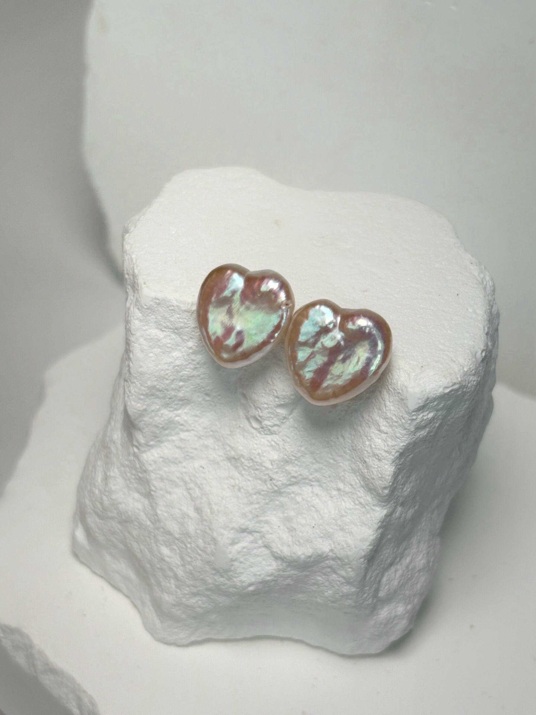 白色のパールですが、通常のハートパールよりピンクの干渉色が出ている可愛いひと品