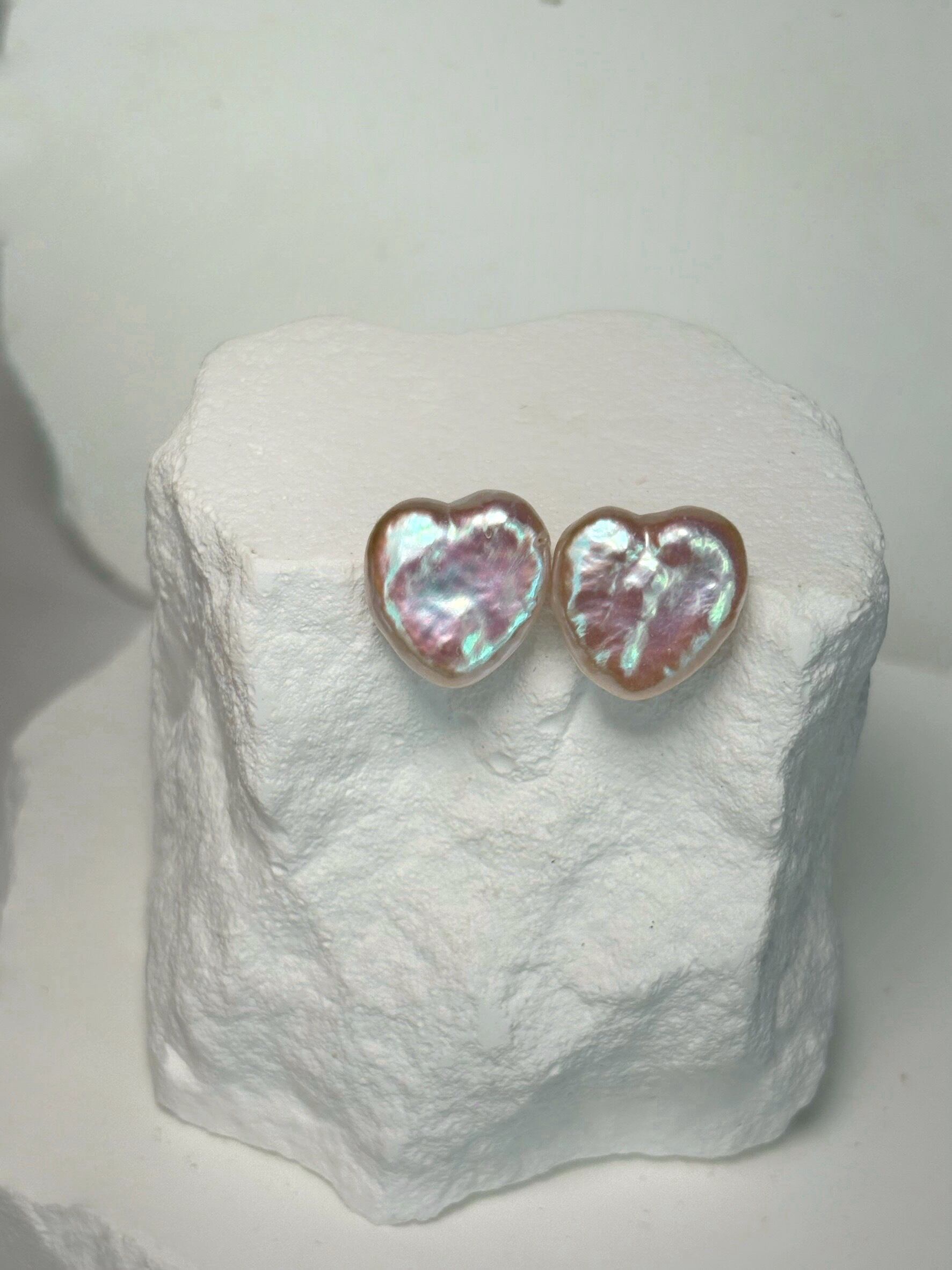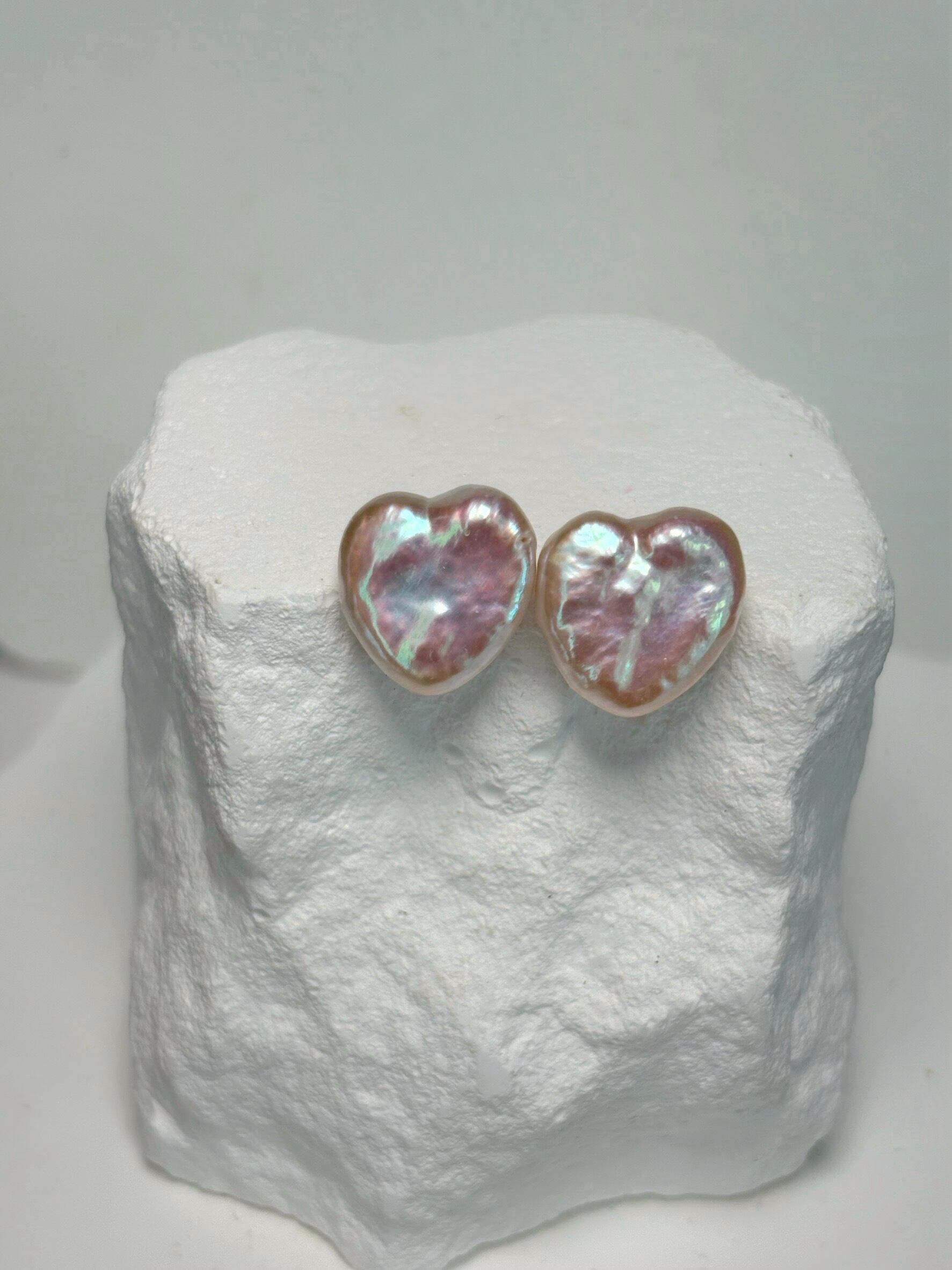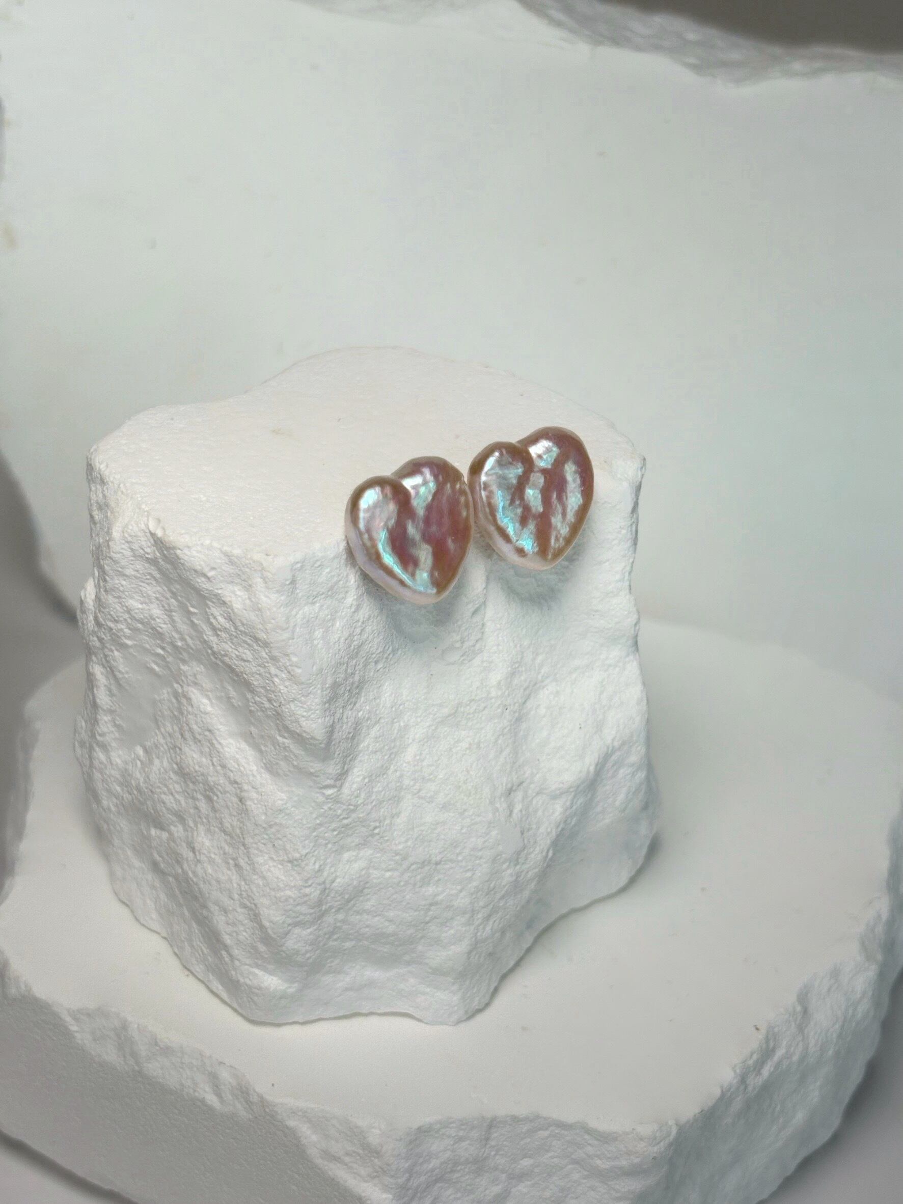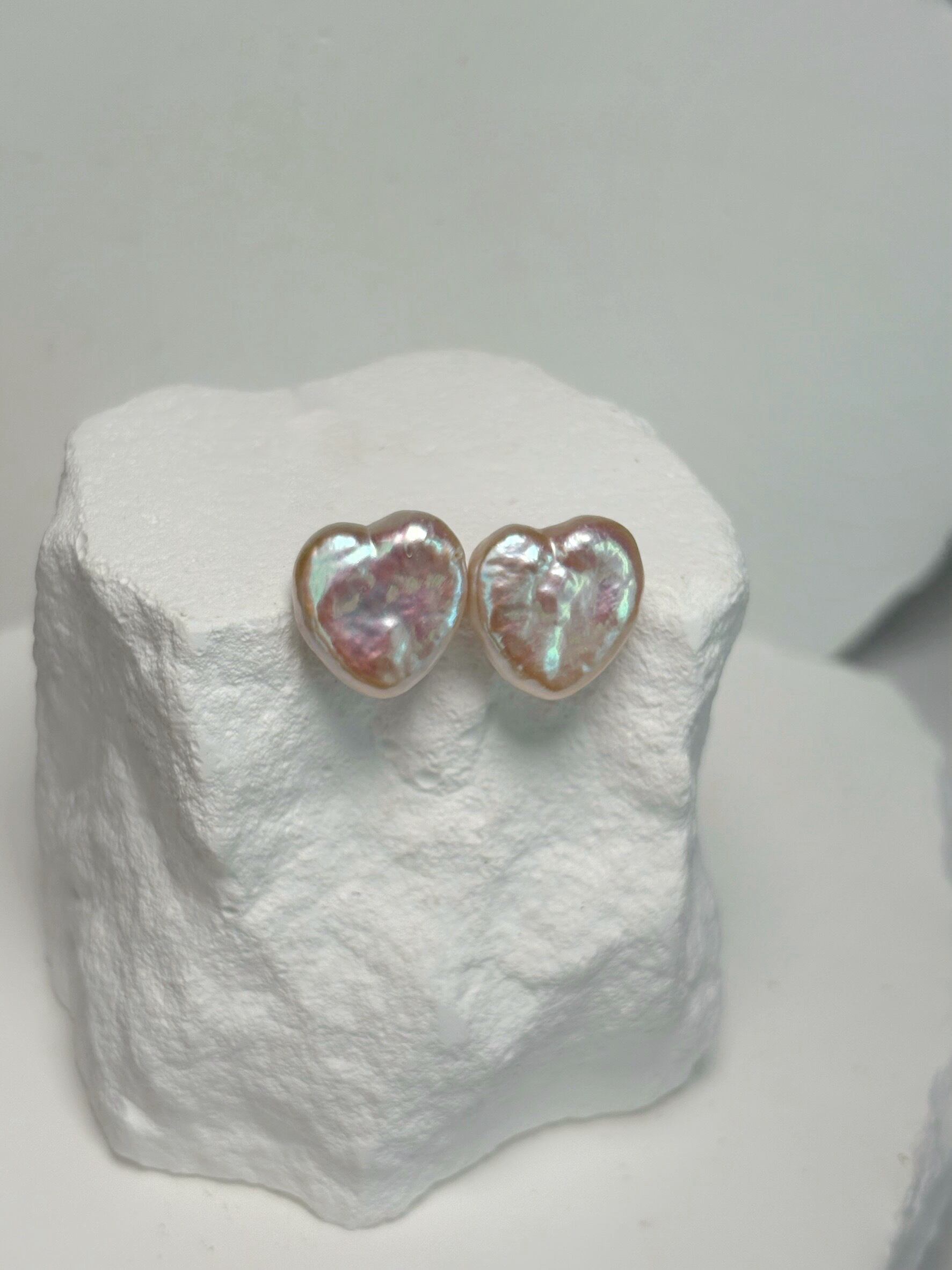 白色のパールですが、通常のハートパールよりピンクの干渉色が出ている可愛いひと品