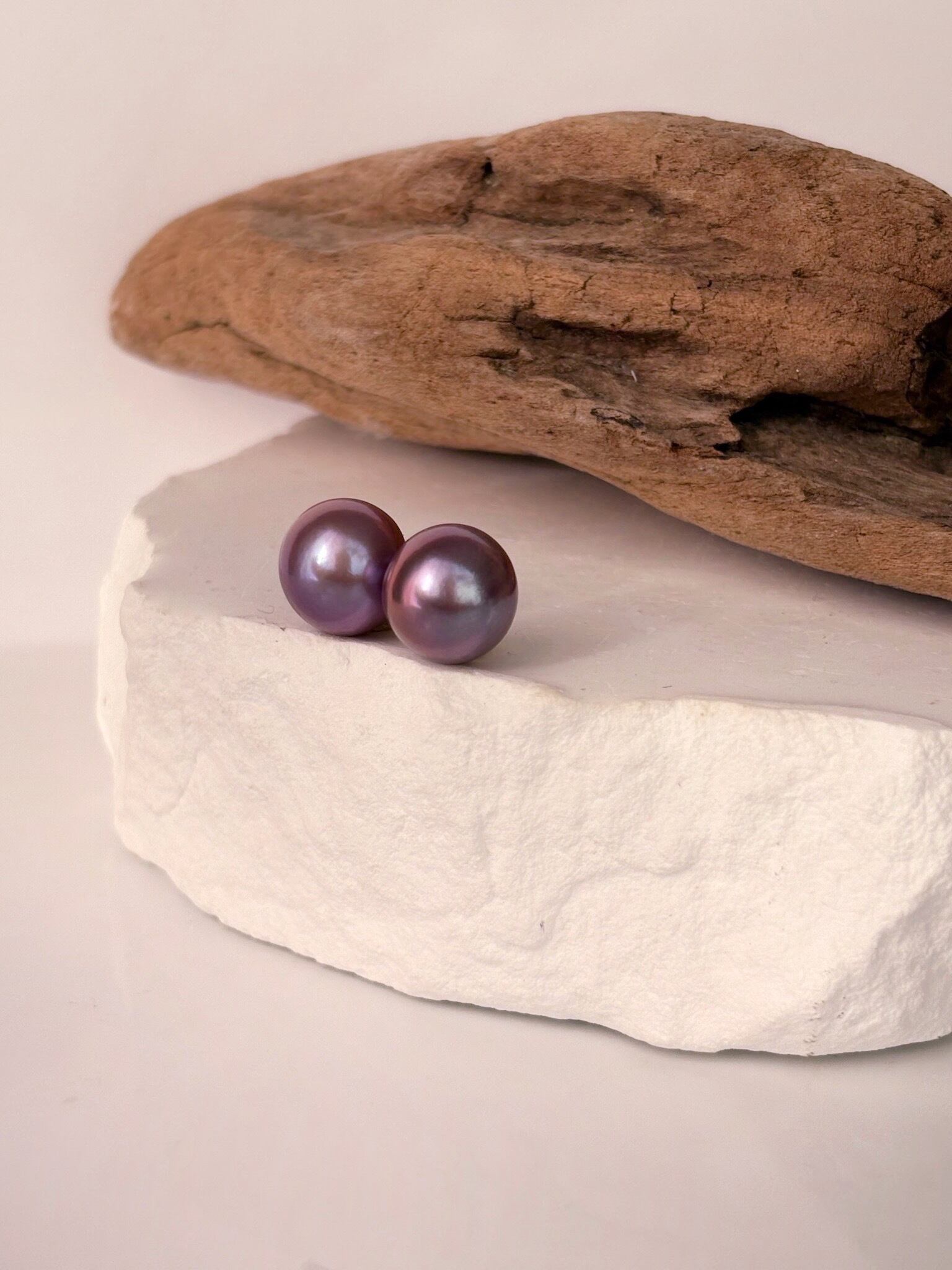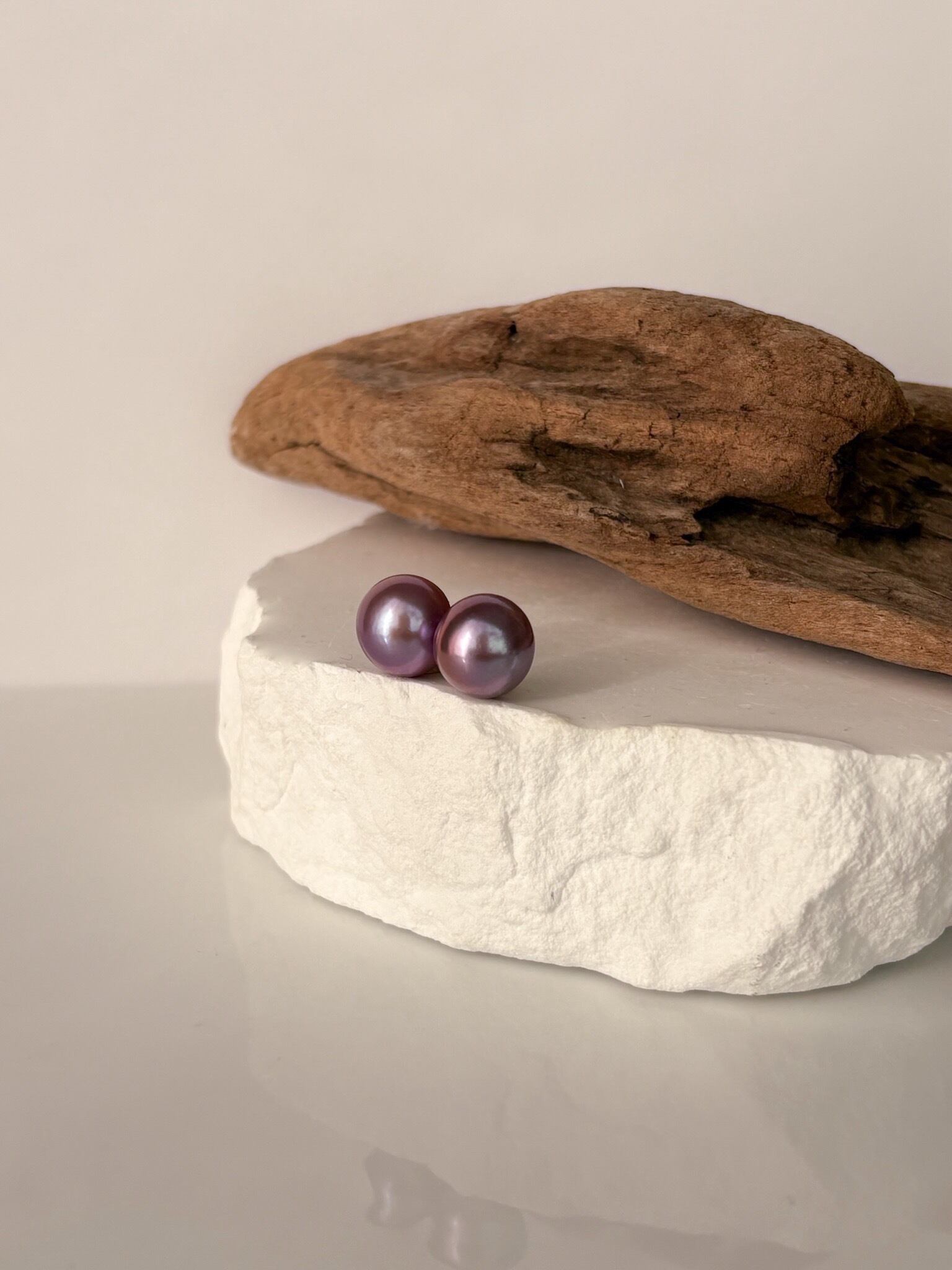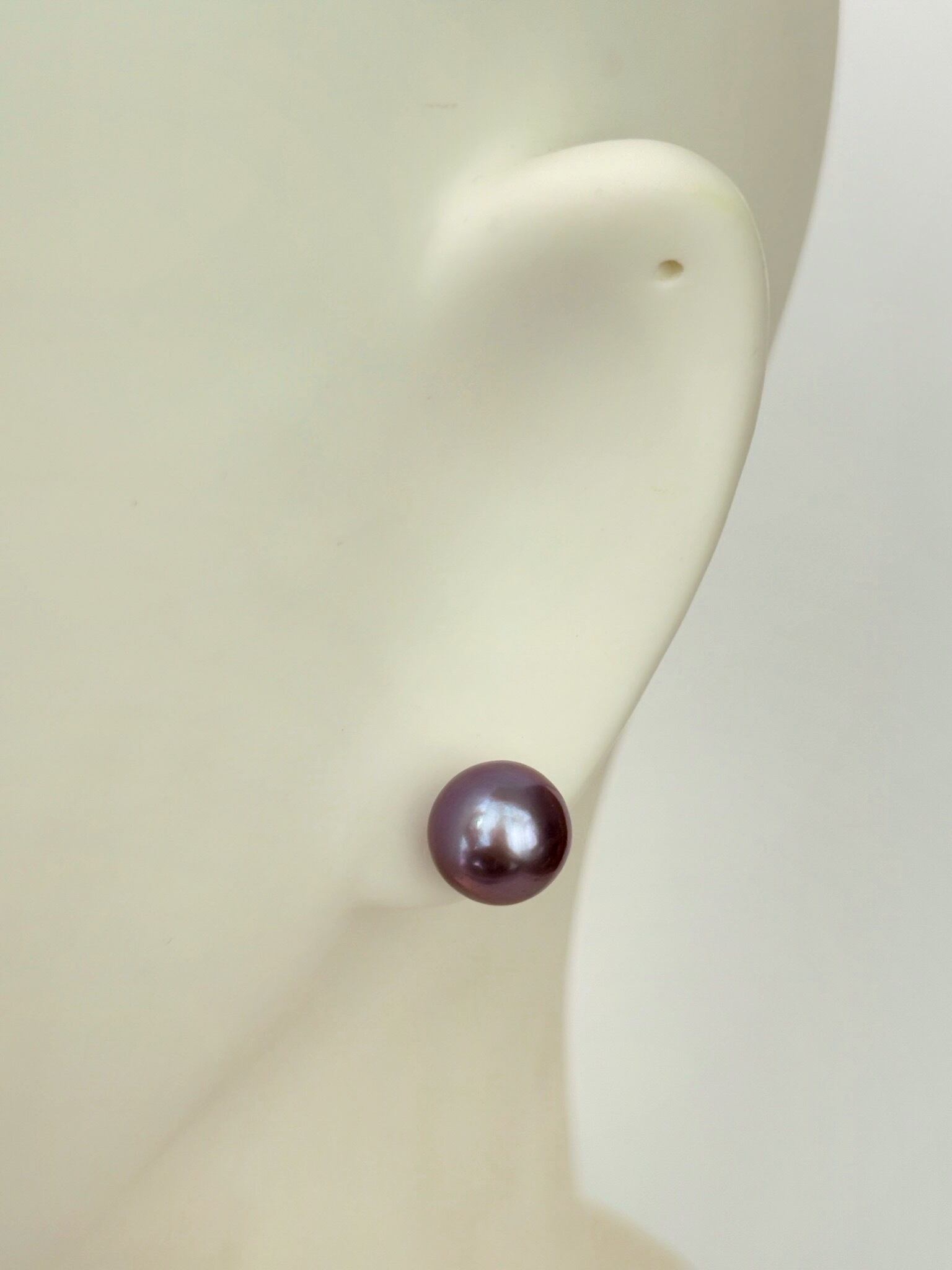 【K10】無穴 ナチュラルカラー パープル系バロックパール ピアス、イヤリング