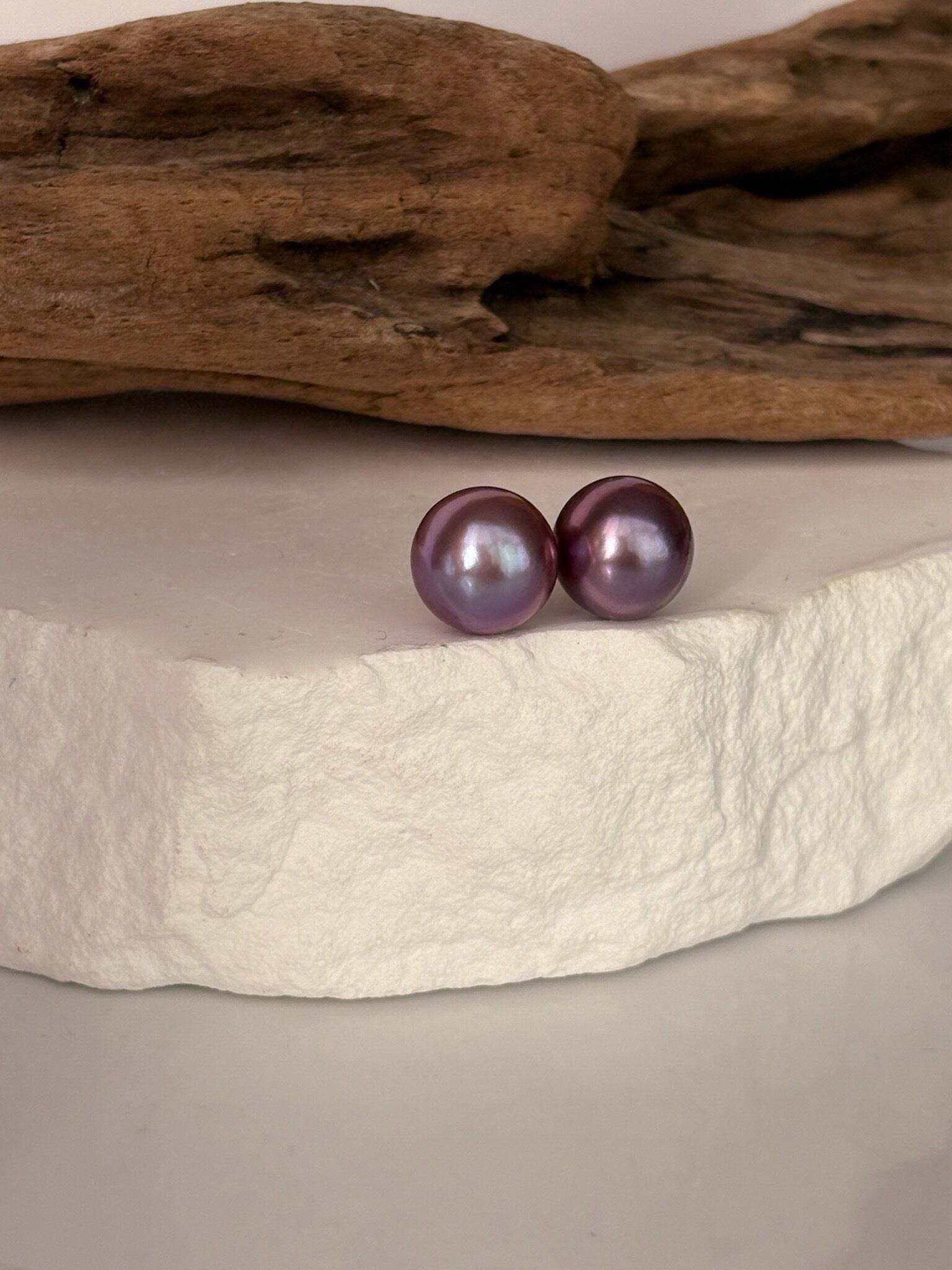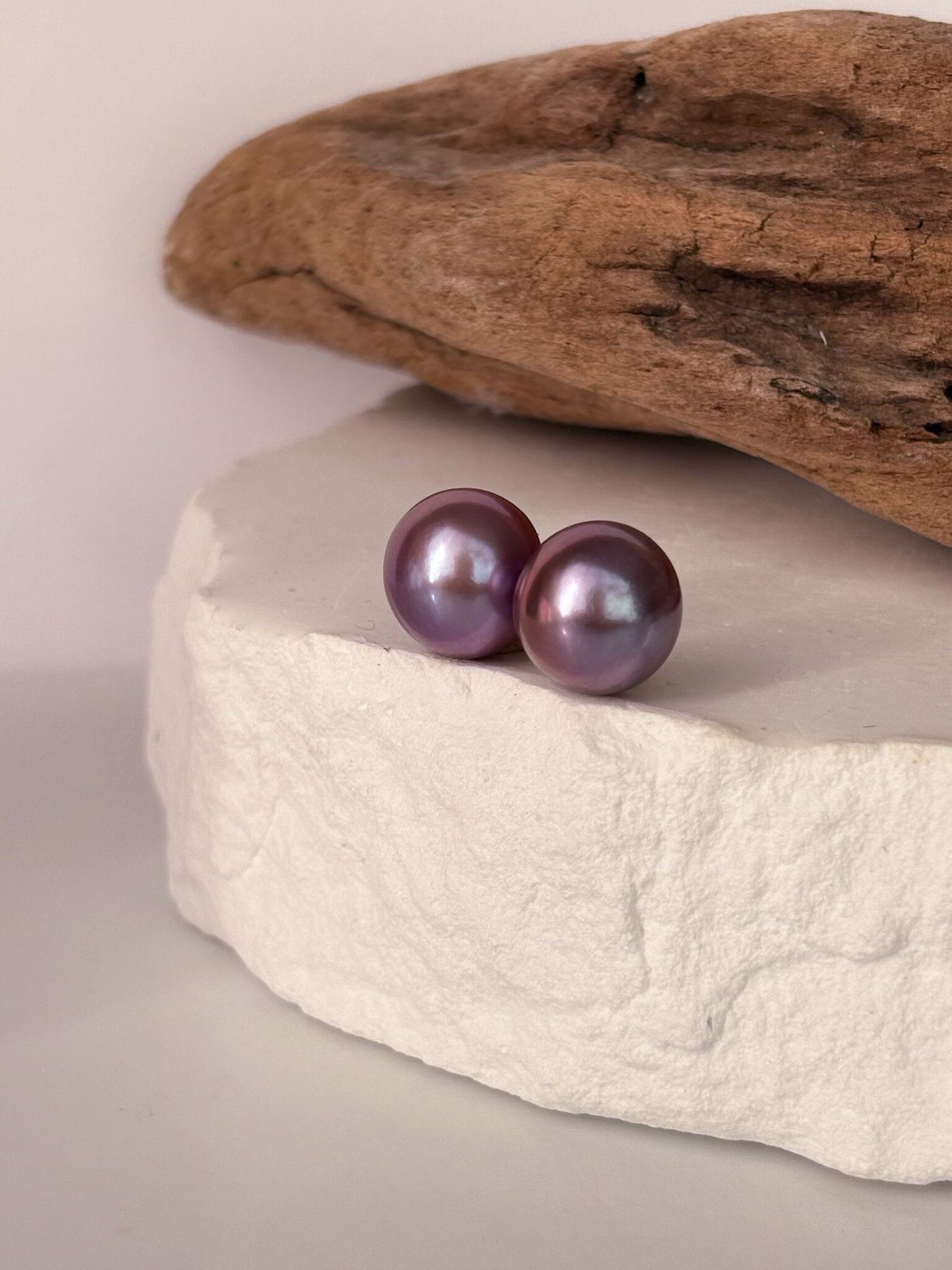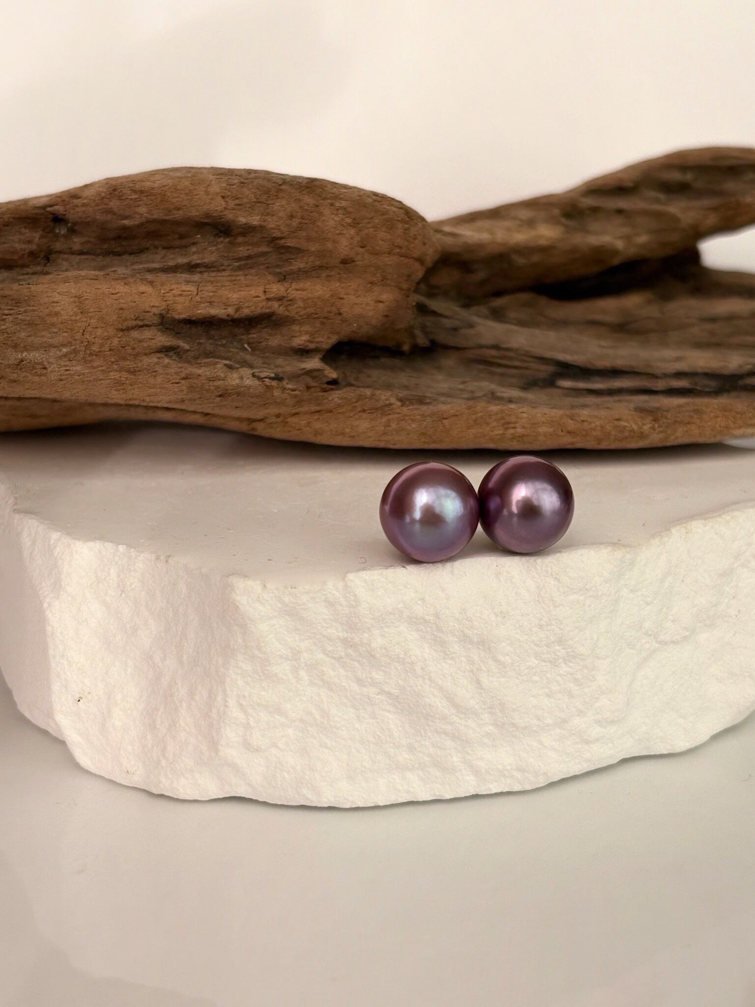 【K10】無穴 ナチュラルカラー パープル系バロックパール ピアス、イヤリング
