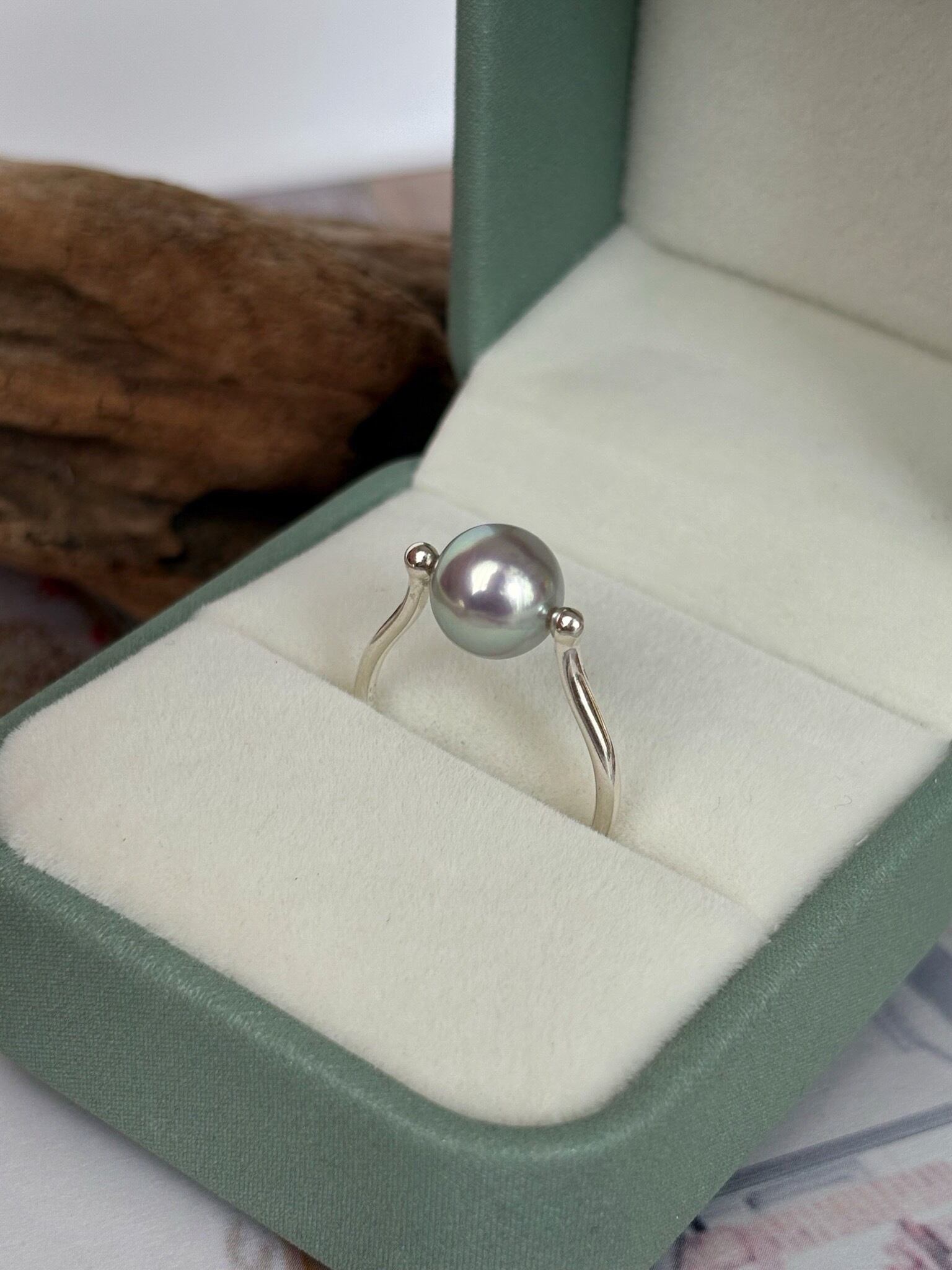 つけるだけでお上品に見えるアコヤ真珠ブルー系。