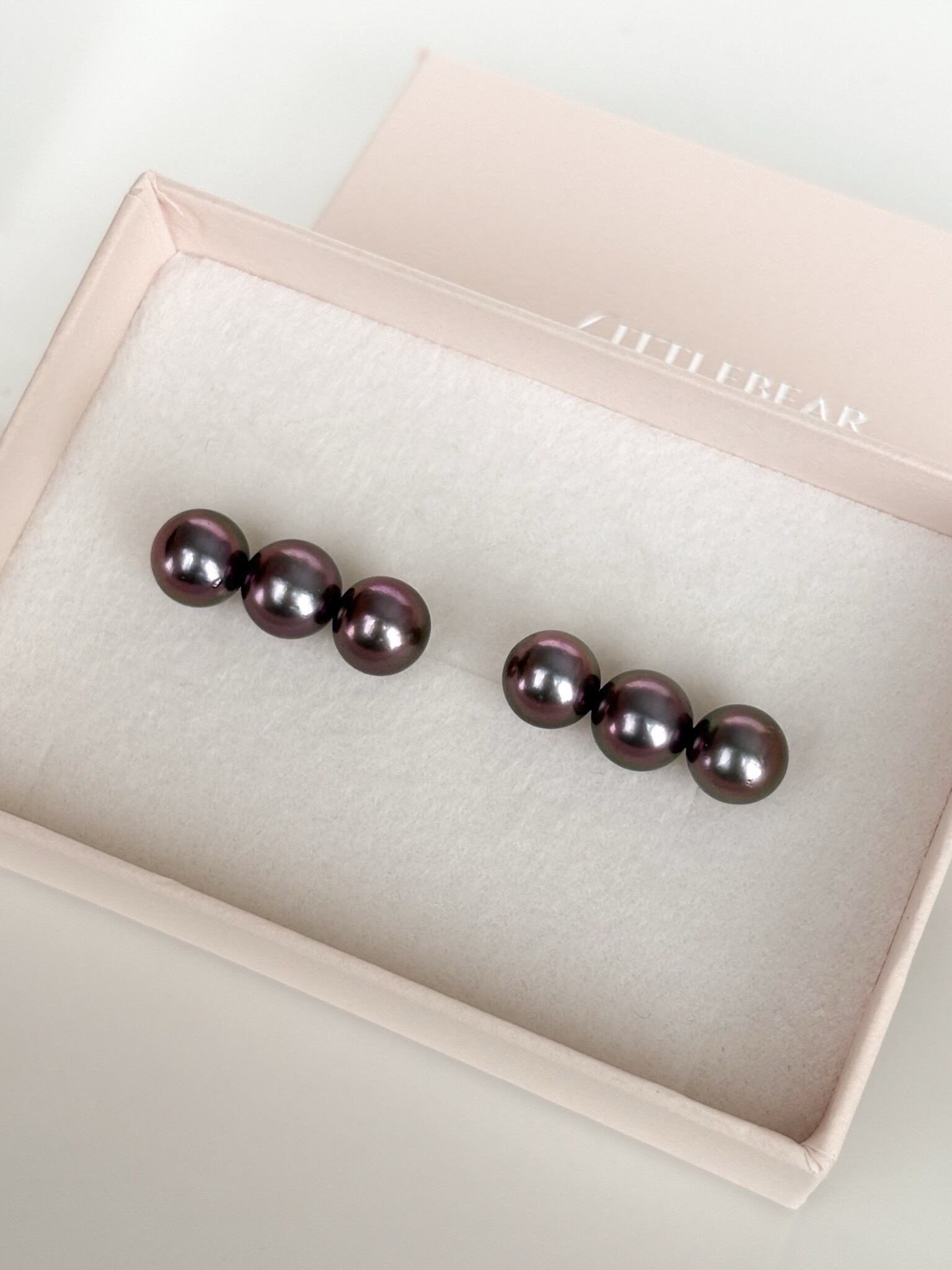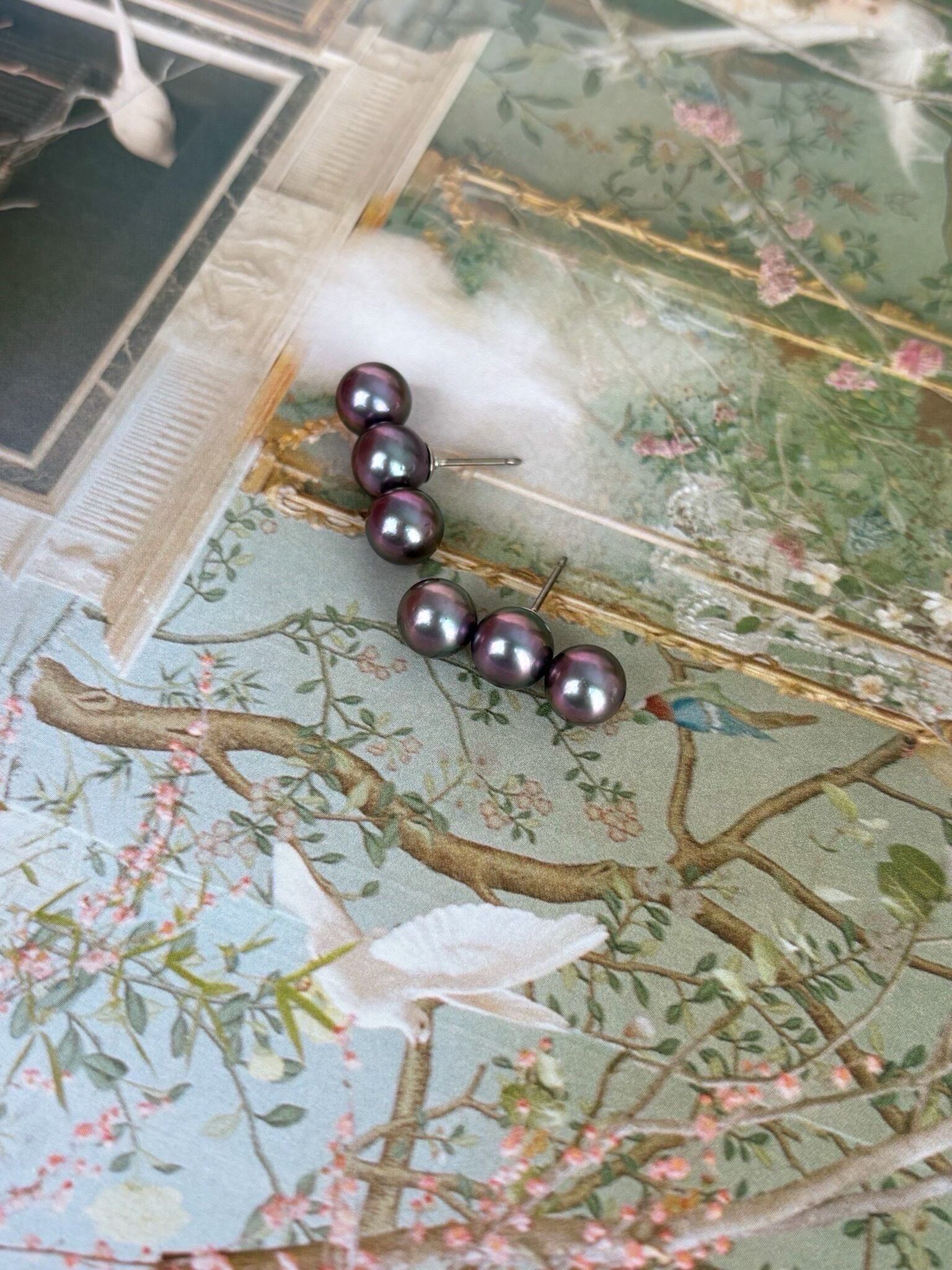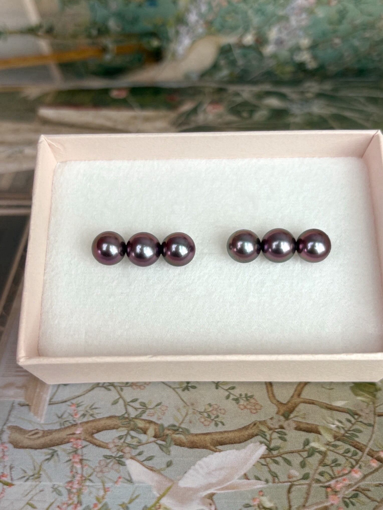 【数点のみ】高品質 アコヤ真珠濃いパープル 3粒パールのピアス