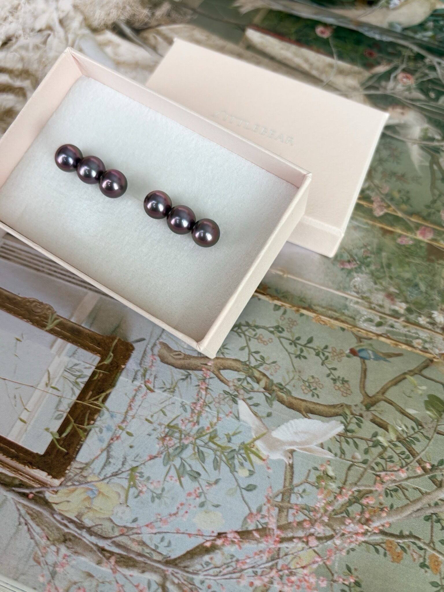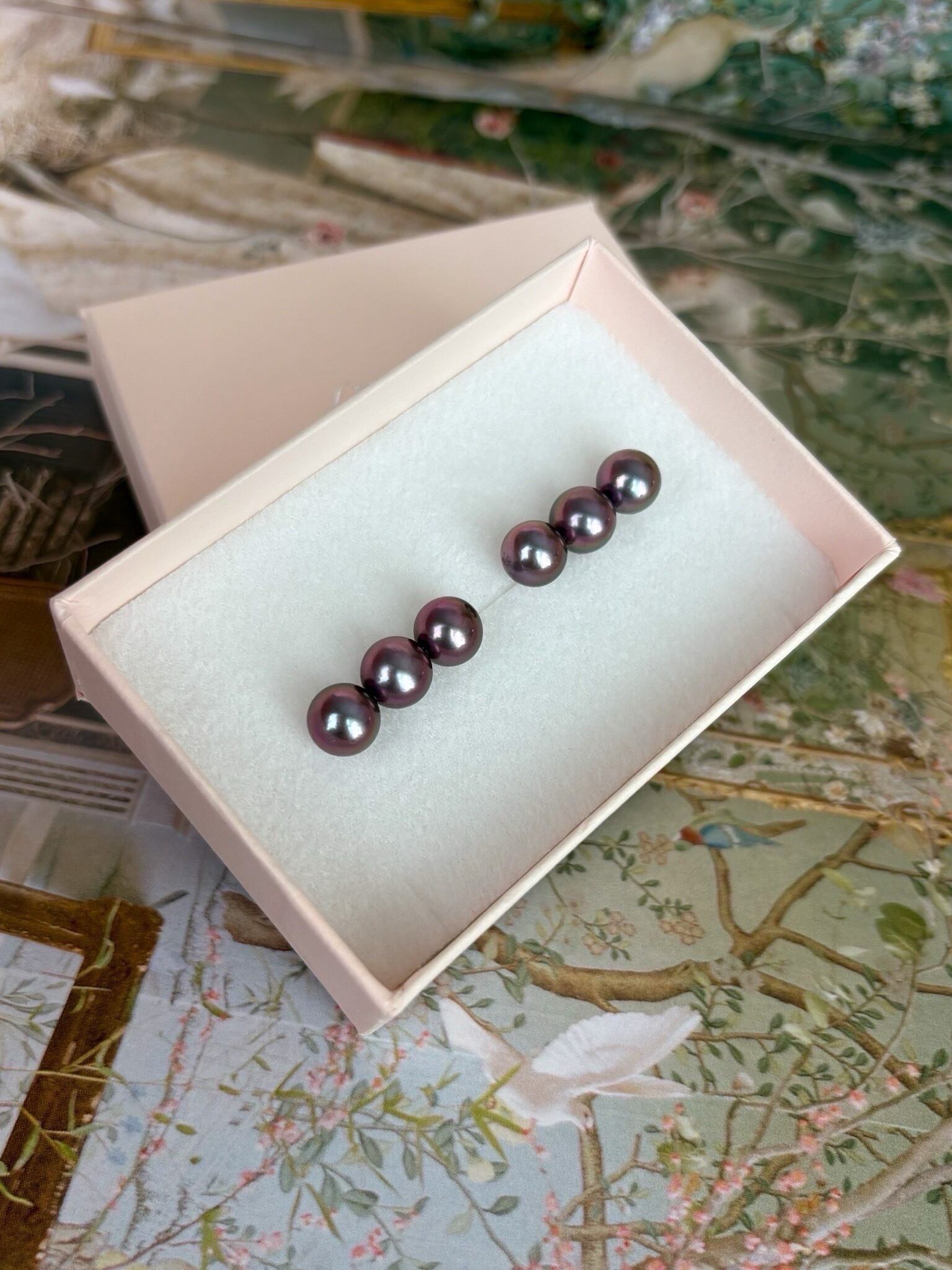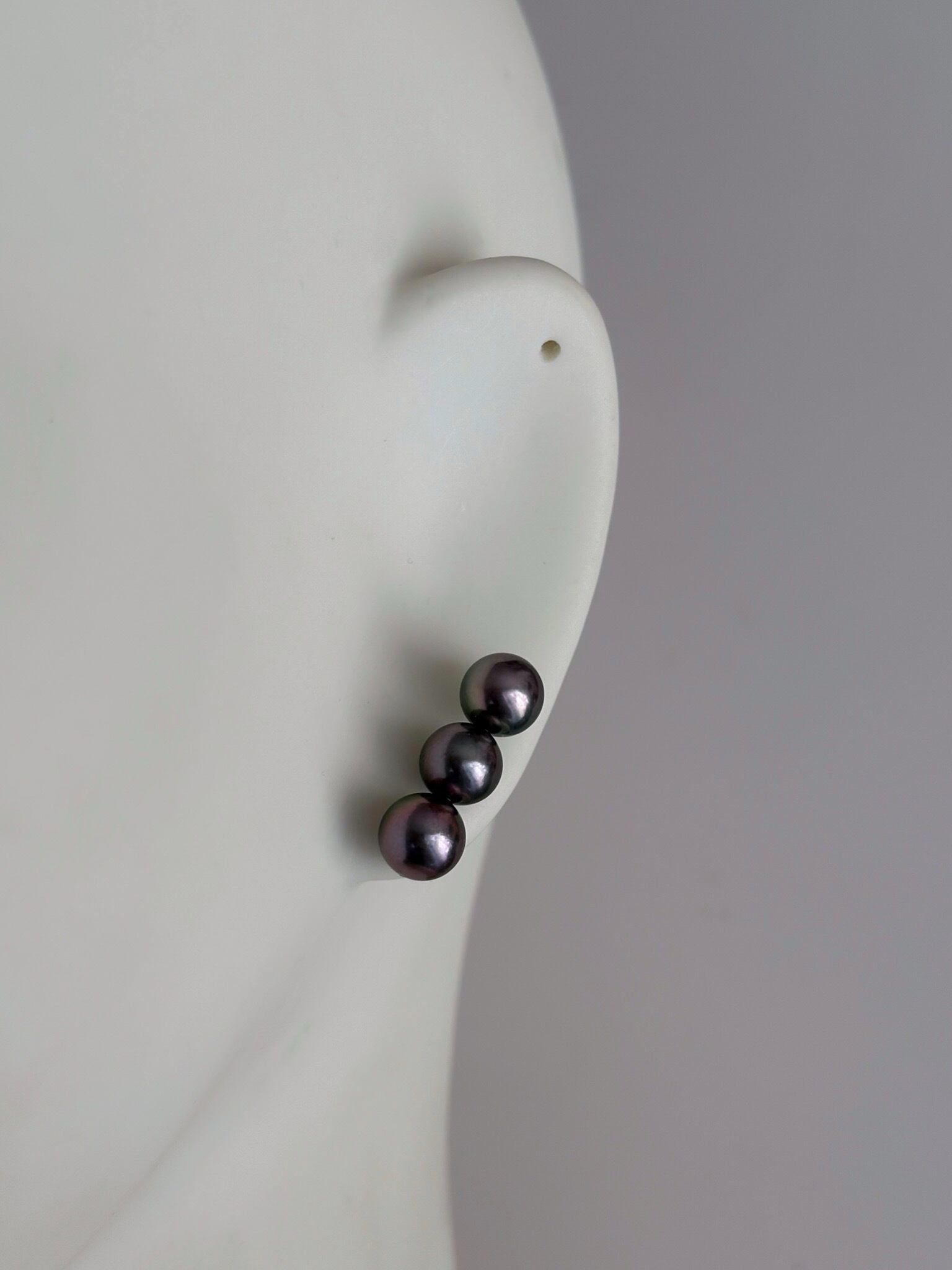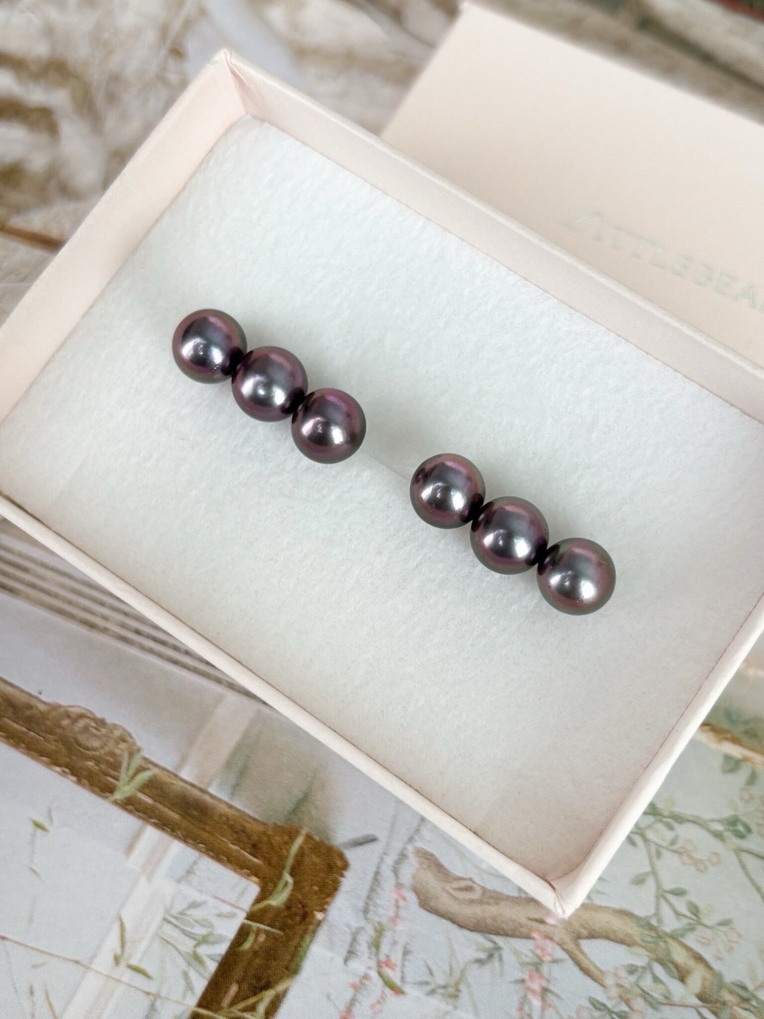【数点のみ】高品質 アコヤ真珠濃いパープル 3粒パールのピアス
